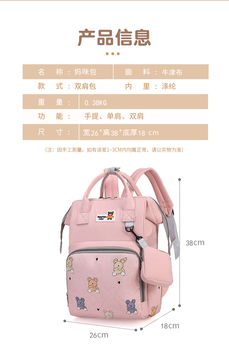 商品名称:新款妈咪包新款时尚大容量双肩包女多功能母婴包带娃外出轻便背包