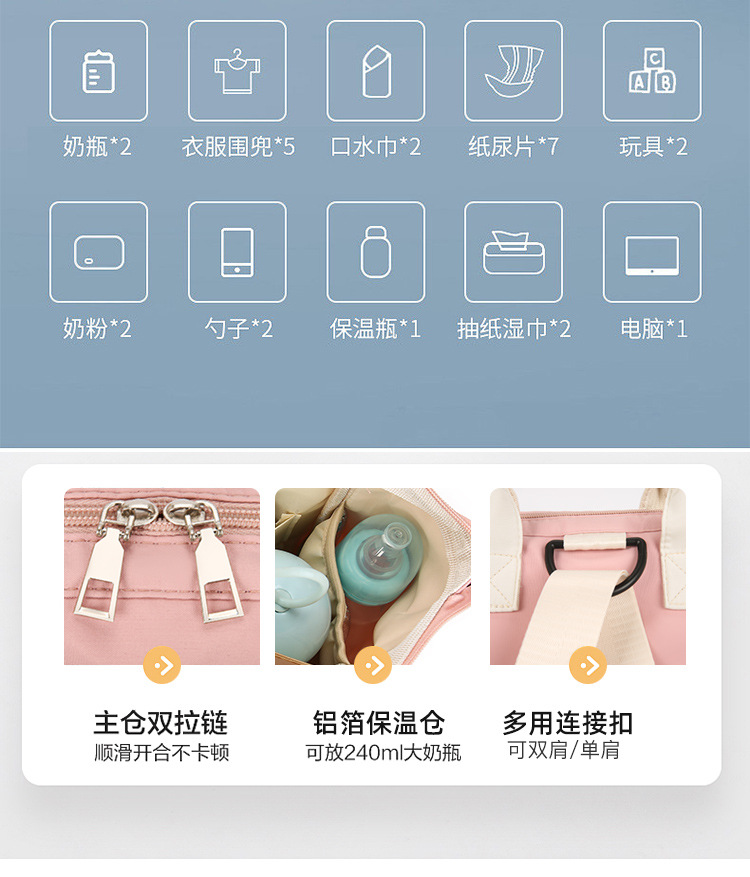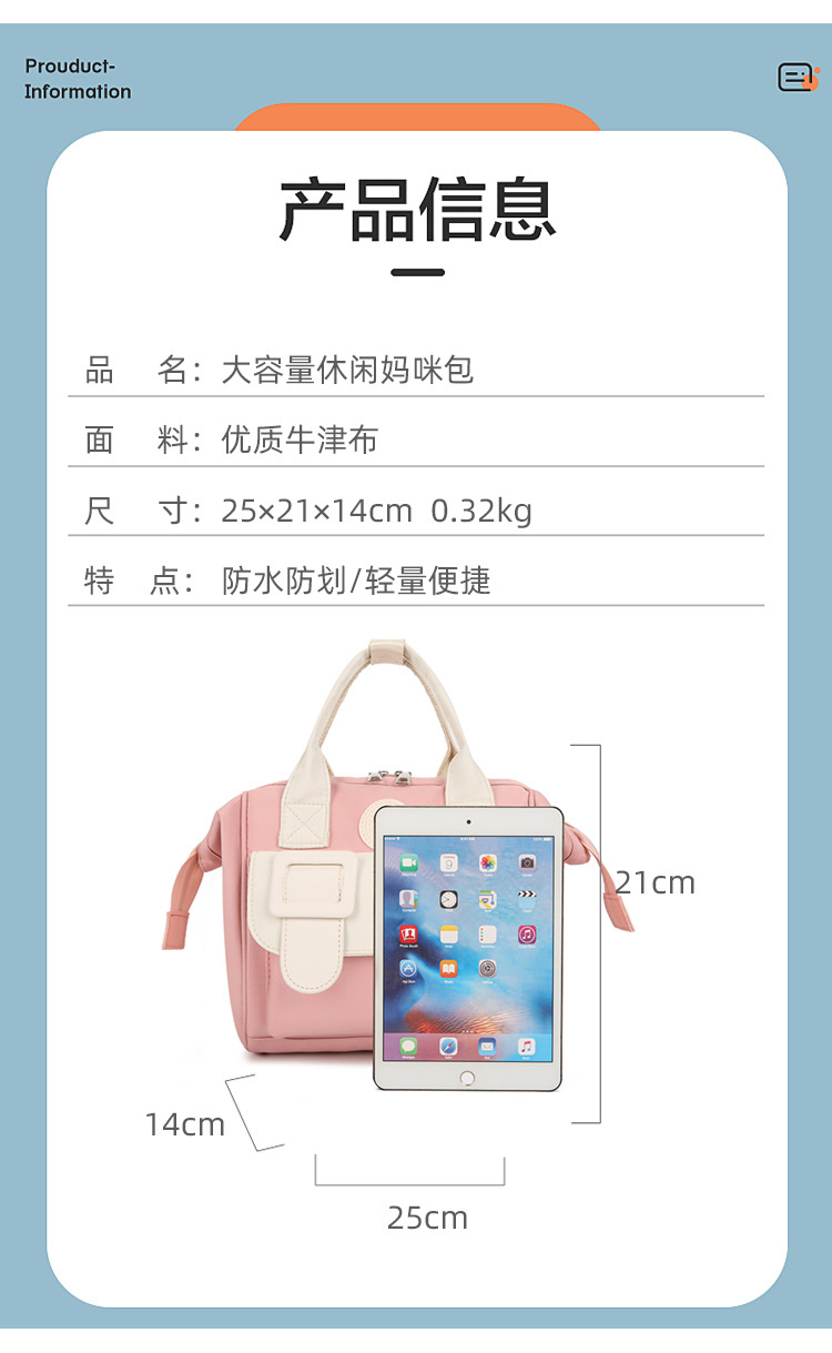 商品名称:时尚简约手提妈咪包新款韩版撞色斜挎包多功能外出双肩母婴包