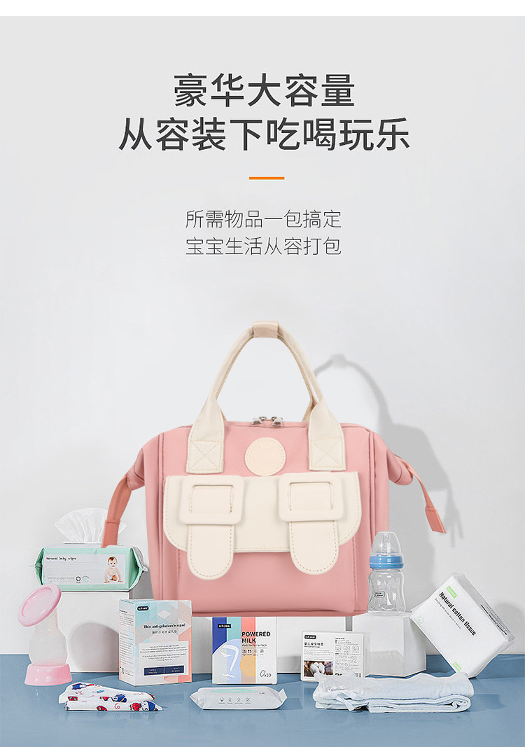 时尚简约手提妈咪包新款韩版撞色斜挎包多功能外出双肩母婴包