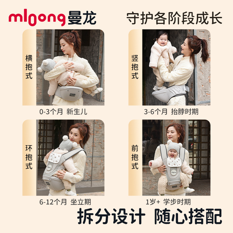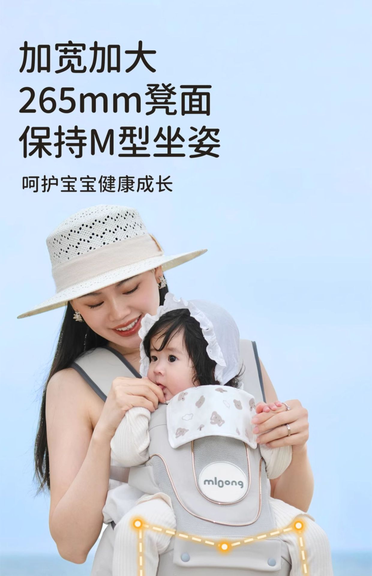 曼龙腰凳轻行二合一宝宝四季多功能两用外出透气带娃神器婴儿背带