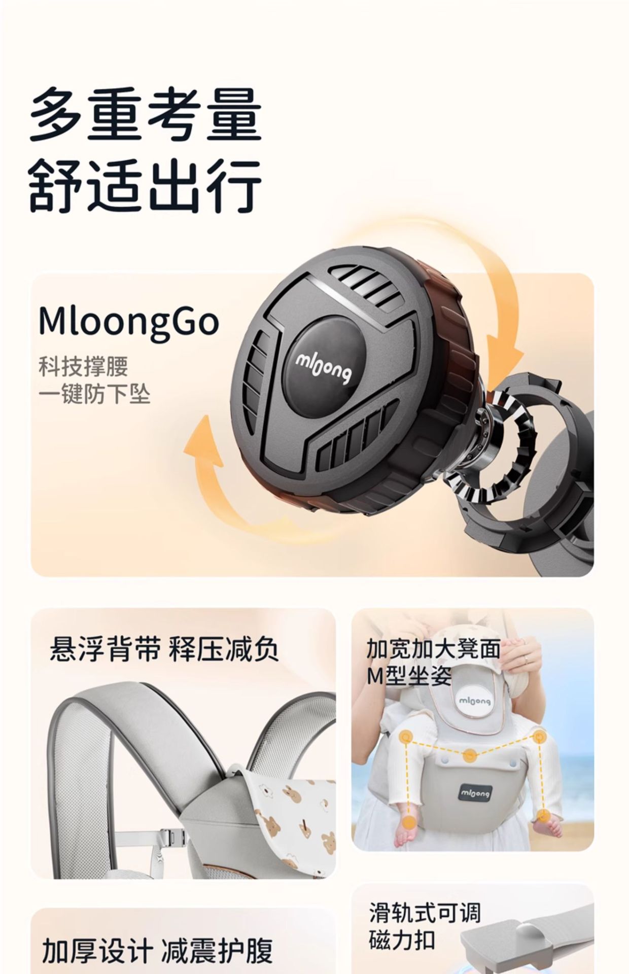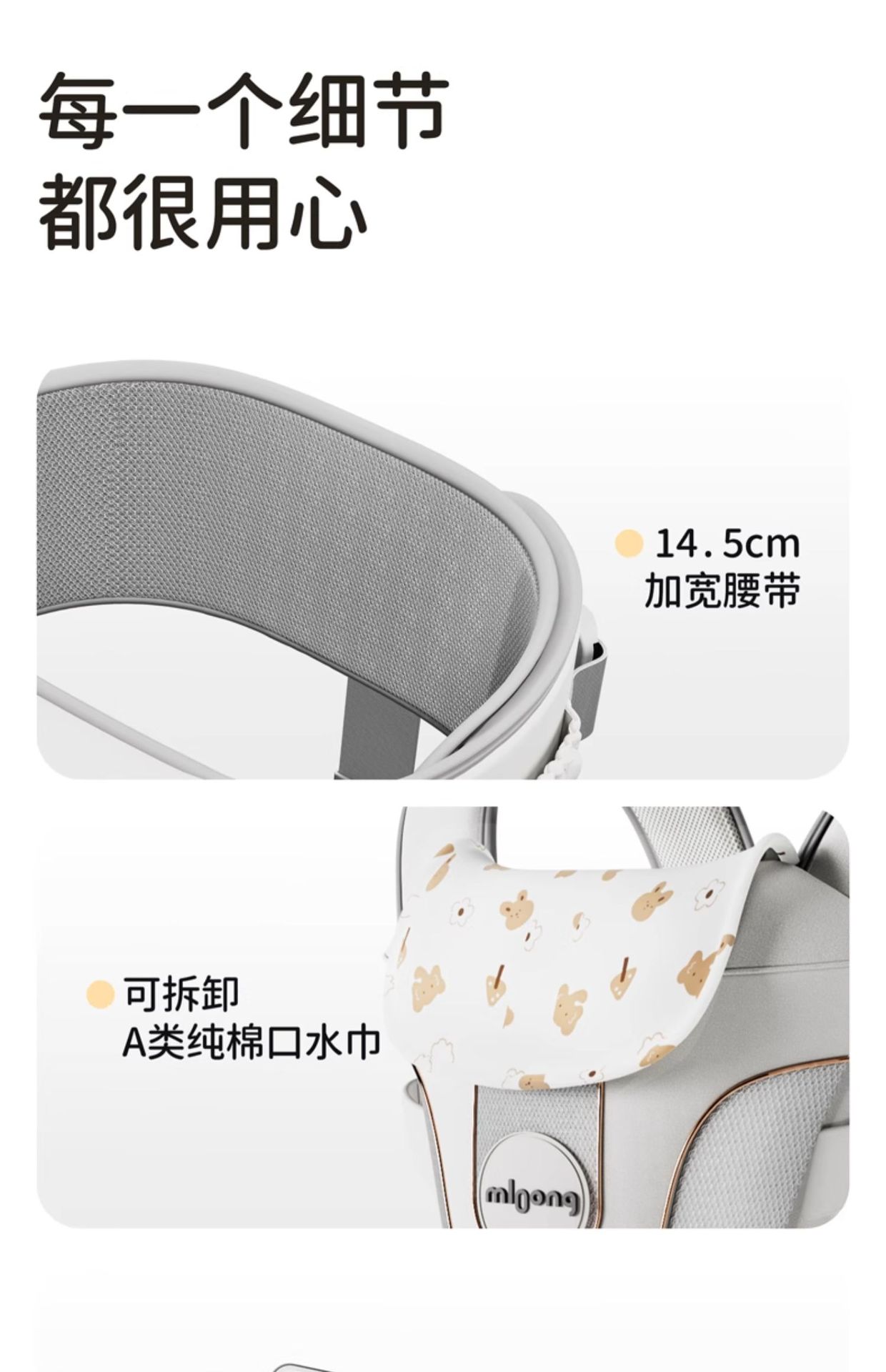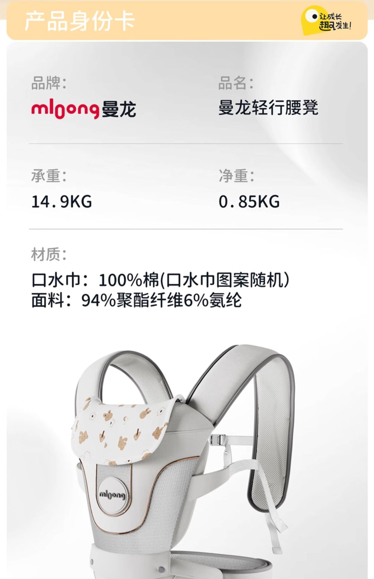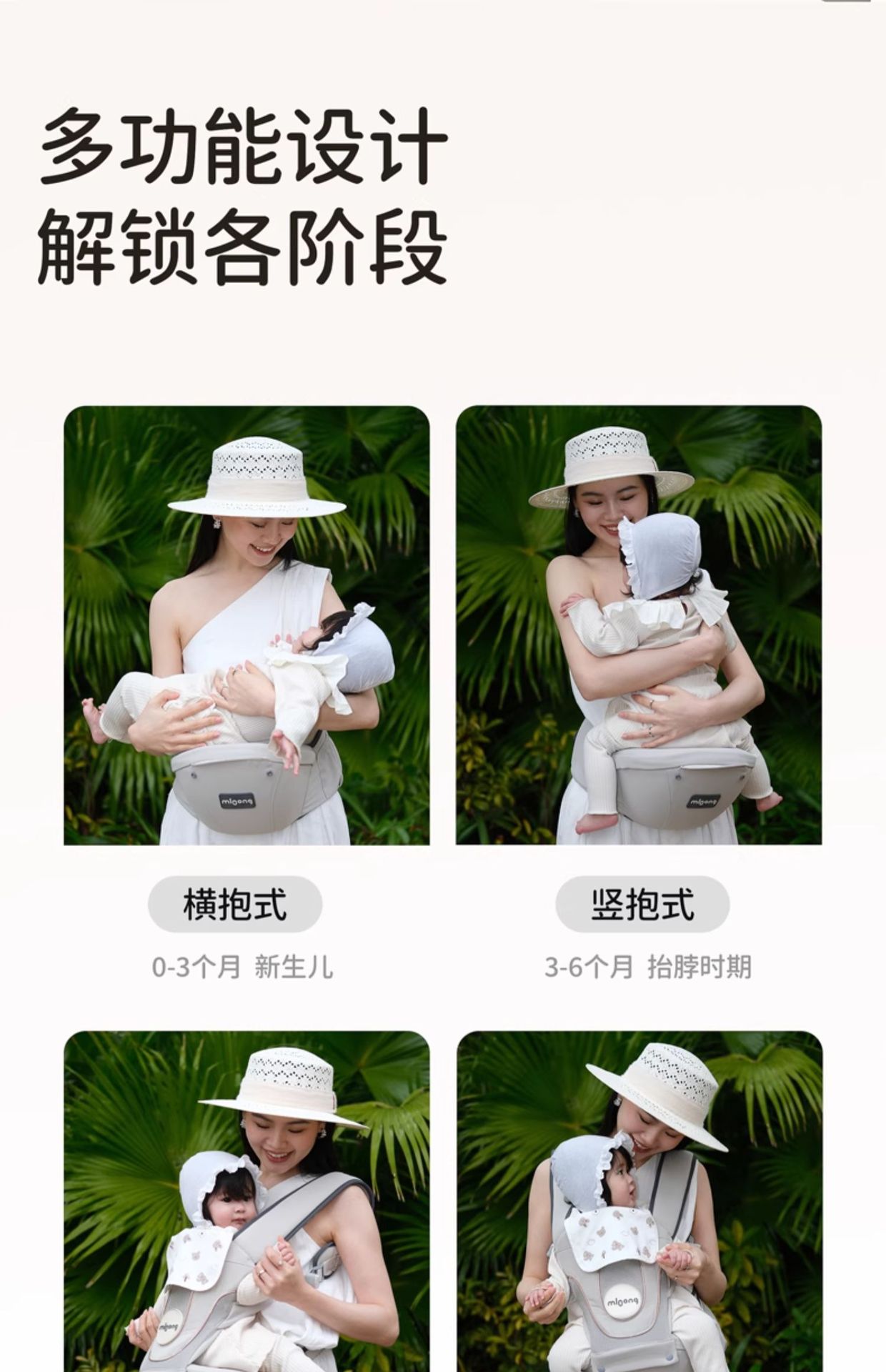 商品名称:曼龙腰凳轻行二合一宝宝四季多功能两用外出透气带娃神器婴儿背带