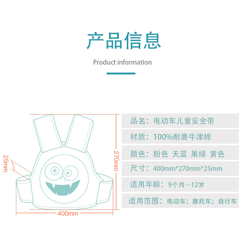 商品名称:电动车摩托车儿童安全带绑带小孩防摔带娃神器电瓶车宝宝安全背带