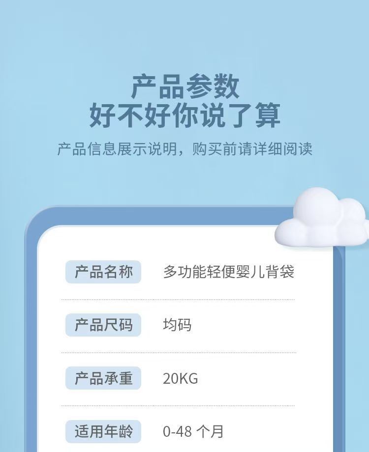 商品名称:婴儿背带前抱式宝宝幼儿童外出简易单肩轻便四季出门抱娃神器腰凳
