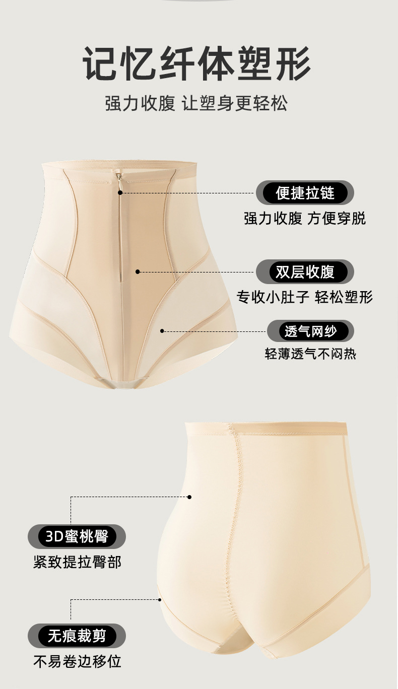 无痕高腰提臀收腹塑身裤拉链排扣产后塑形裤强效收小肚子三角裤
