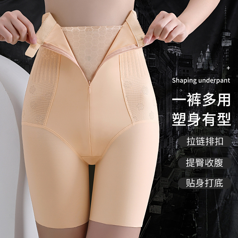 高腰提花拉链提臀双层收腹裤塑身塑形加肥加大无痕美体平角内裤女
