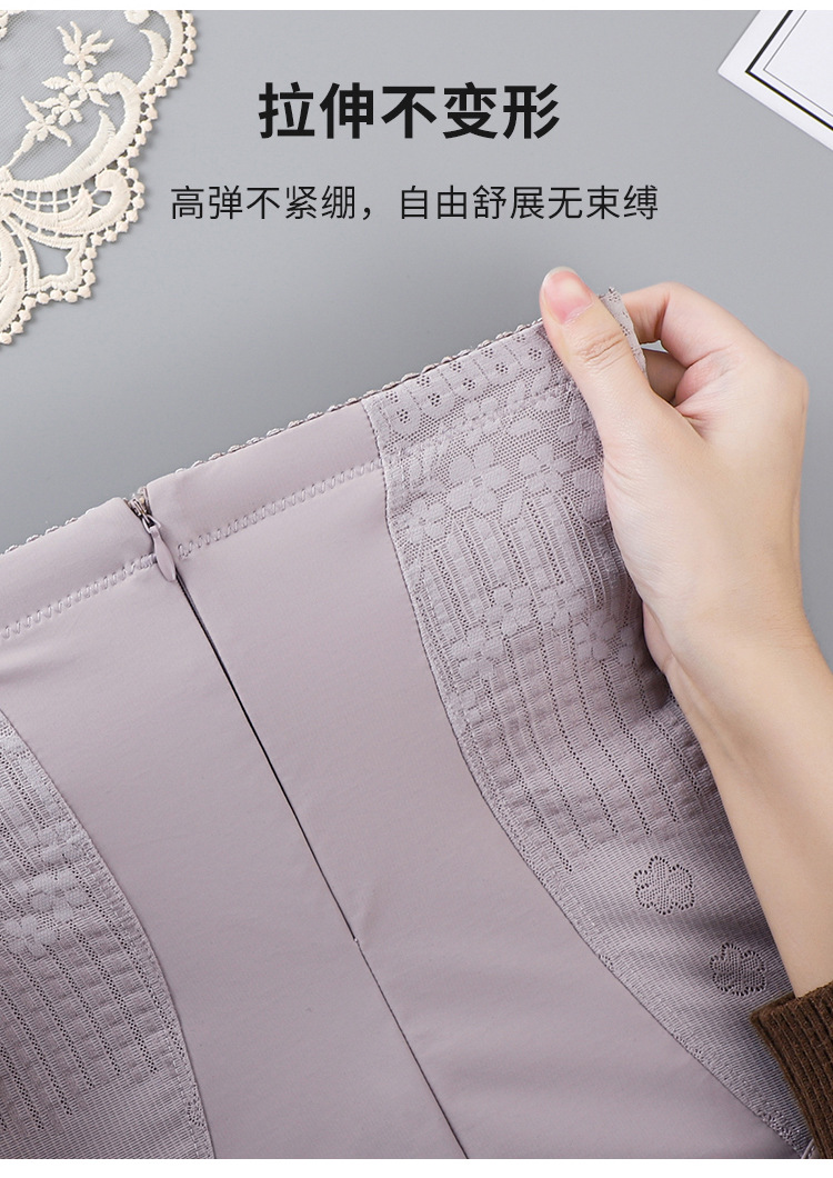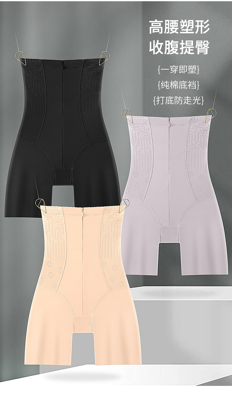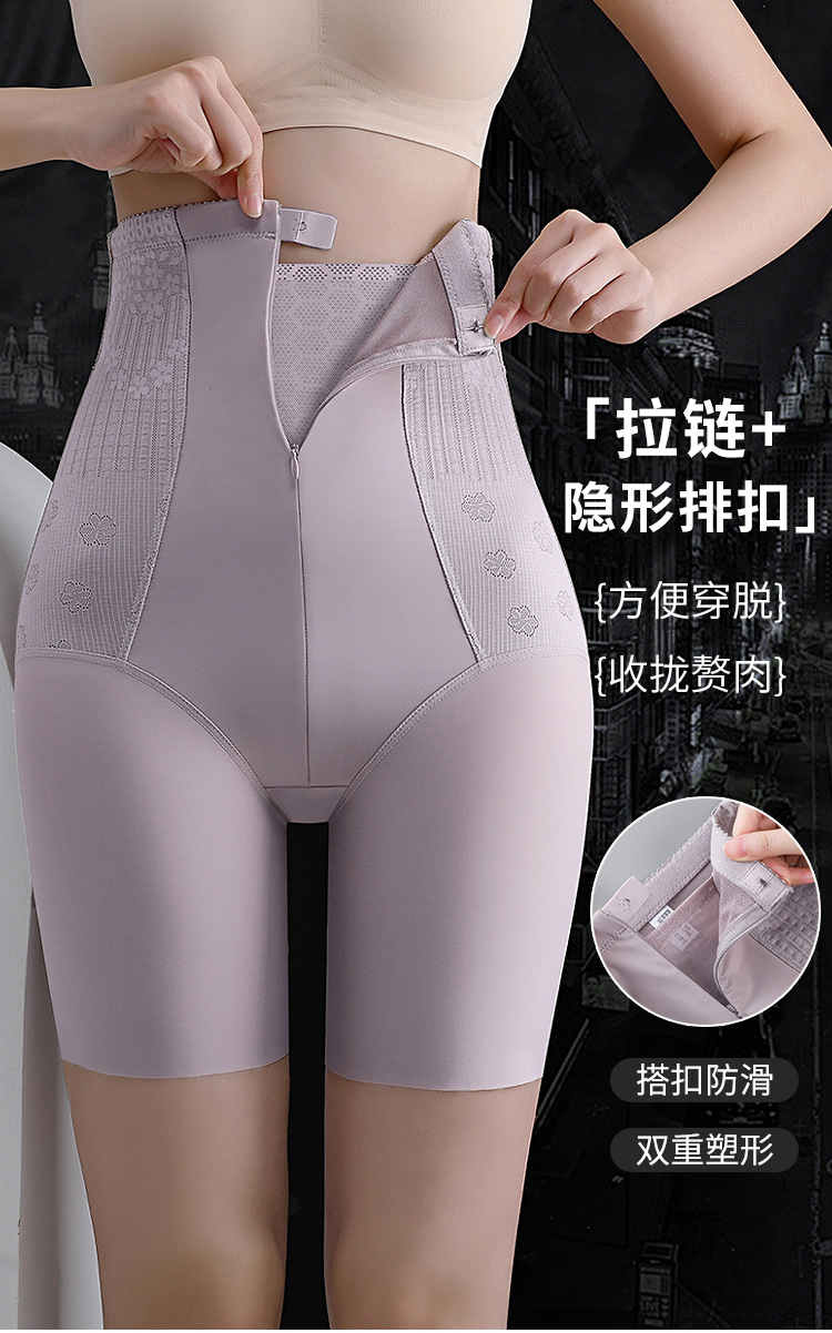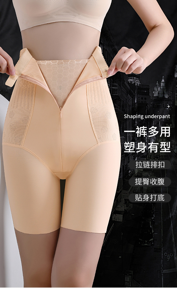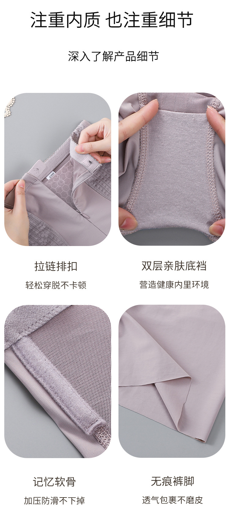 商品名称:高腰提花拉链提臀双层收腹裤塑身塑形加肥加大无痕美体平角内裤女