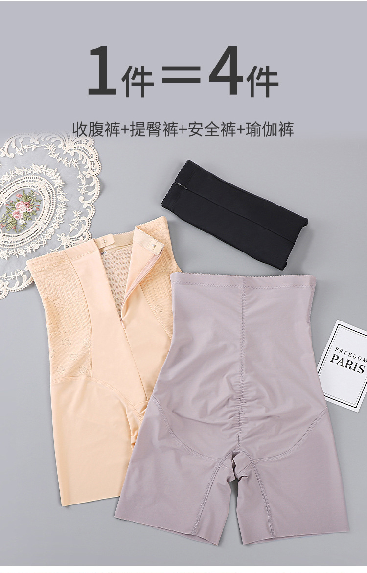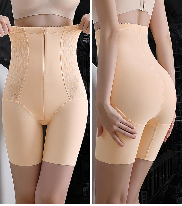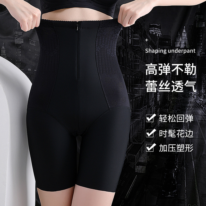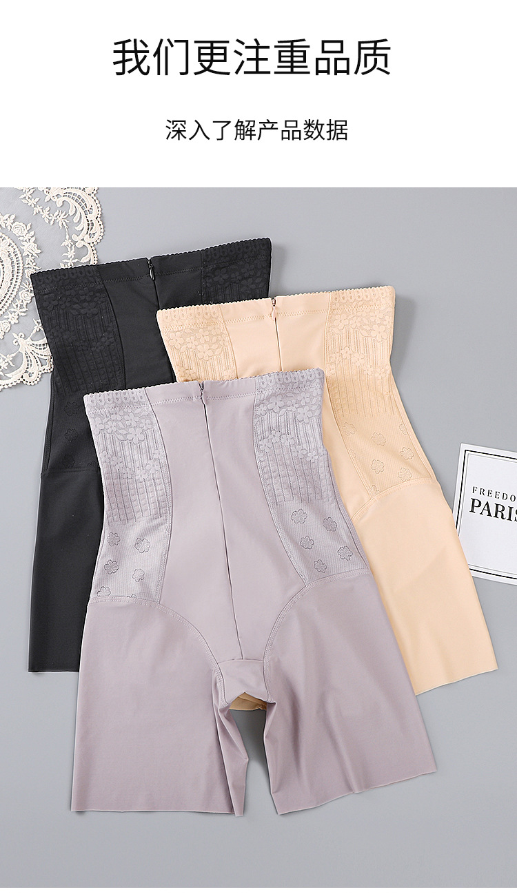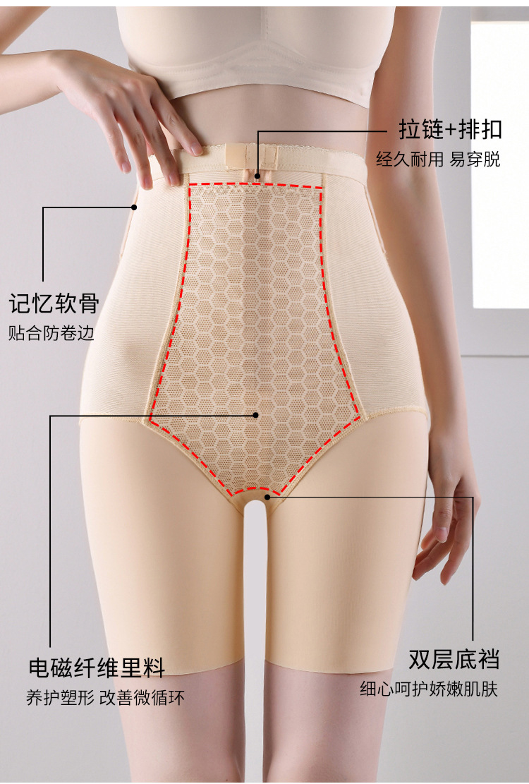 商品名称:高腰提花拉链提臀双层收腹裤塑身塑形加肥加大无痕美体平角内裤女
