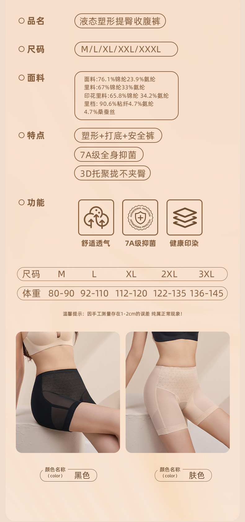 功能:定型,聚拢,无痕,提臀,收腹,调整型,合跨丰臀