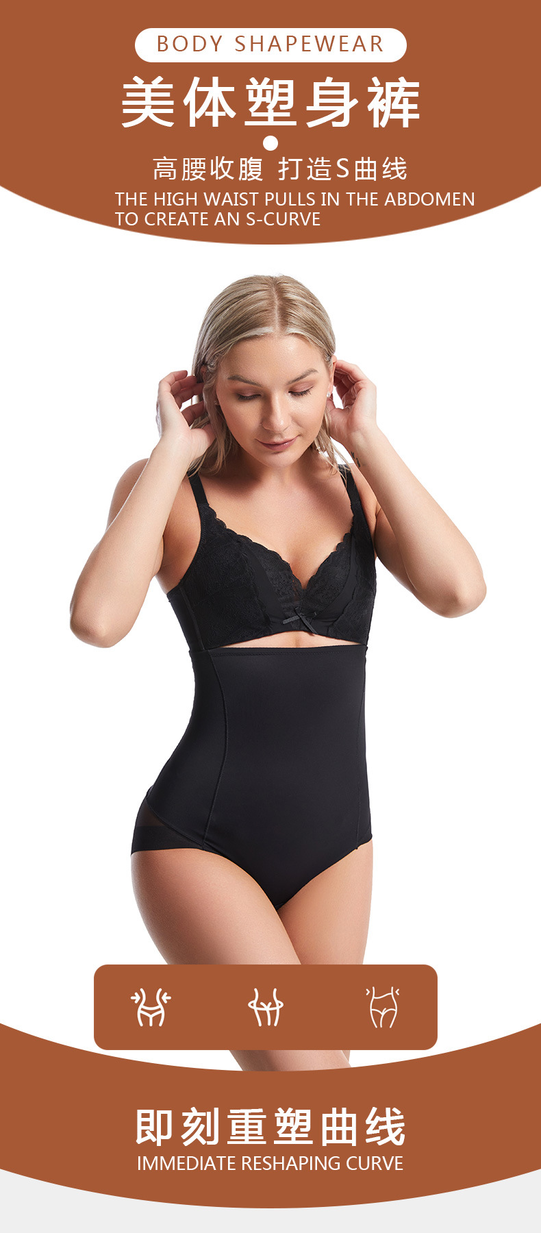 商品名称:薄款产后高腰塑形美体裤无痕性感网纱高弹瘦腰提臀排扣三角裤