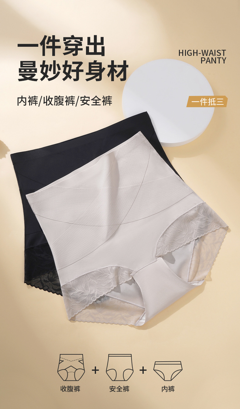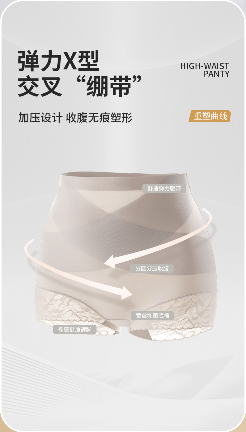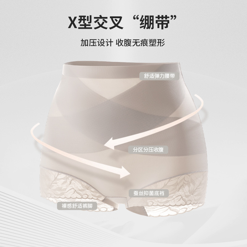 商品名称:收腹裤女无痕交叉微压强力收小肚子提臀不卷边产后修形高腰塑身裤