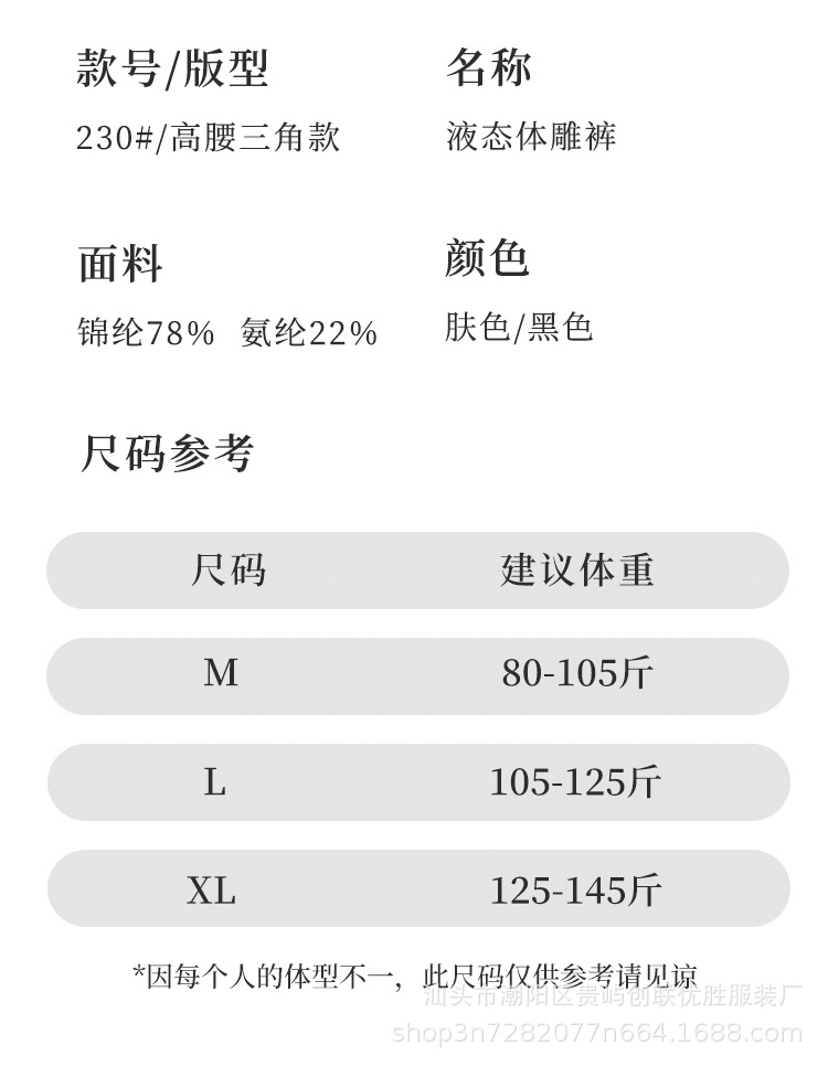 功能:无痕,提臀,收腹,合跨丰臀