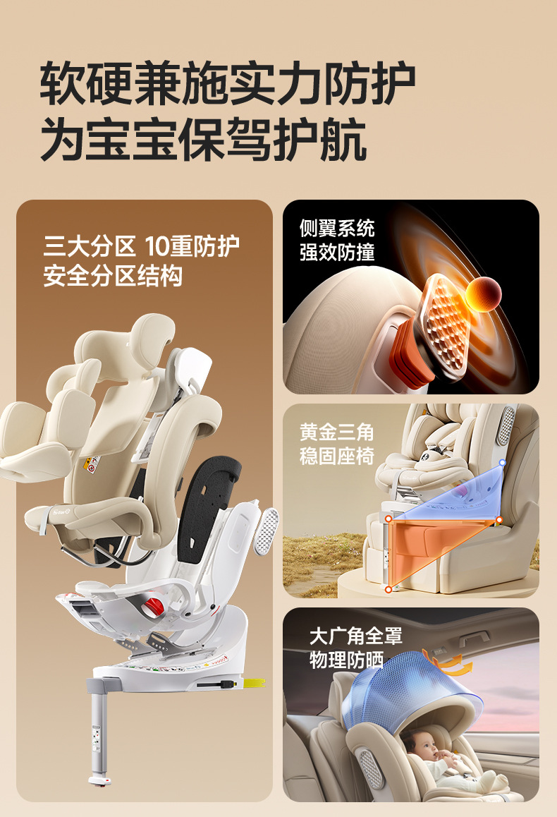 遮阳棚款-金【I-SIZE认证+ADAC测试+A类婴幼儿面料】175°大躺角+可折叠支撑腿
