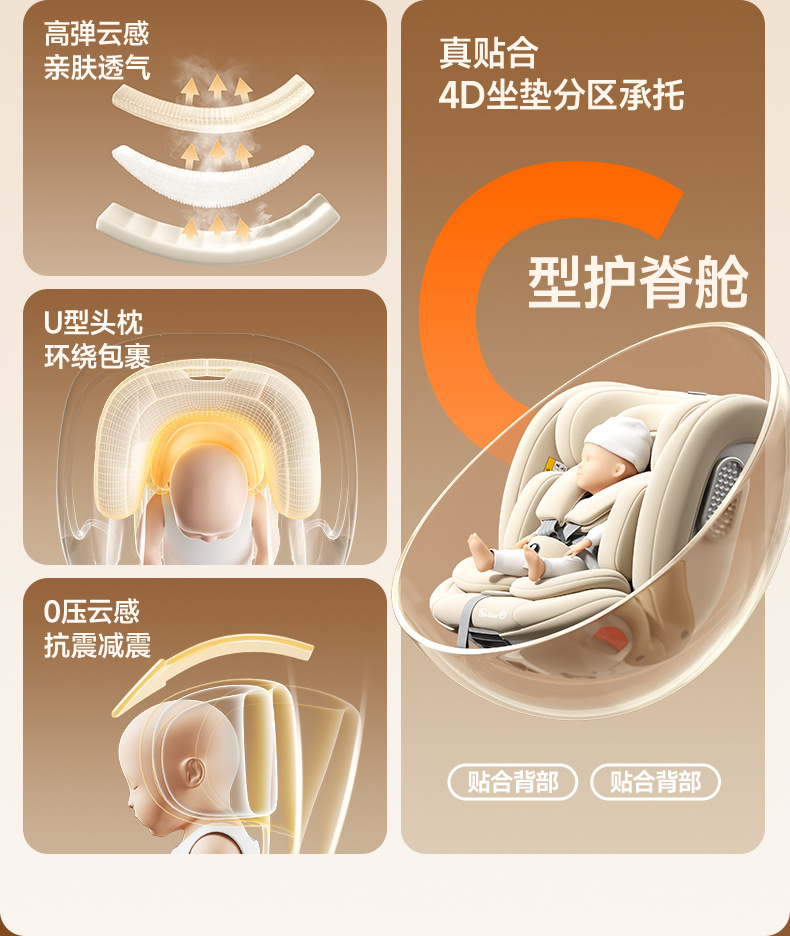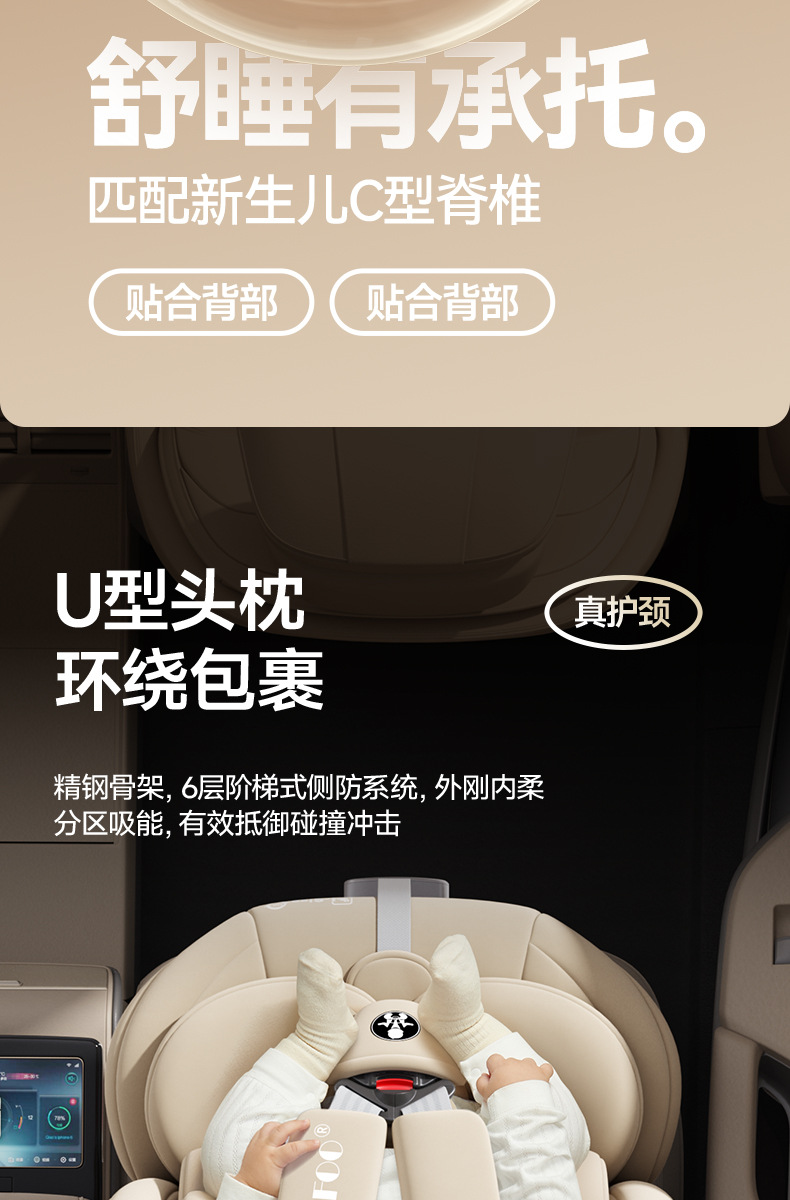 旗舰金【I-SIZE认证+ADAC测试+A类婴幼儿面料】175°大躺角+可折叠支撑腿