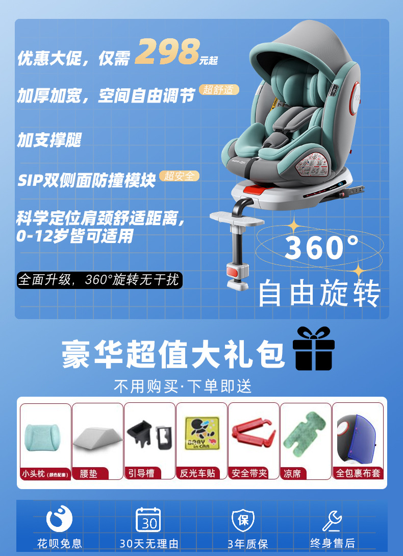 商品名称:婴儿车载专用安全座椅开车带娃神器 360°可旋转汽车儿童安全座椅