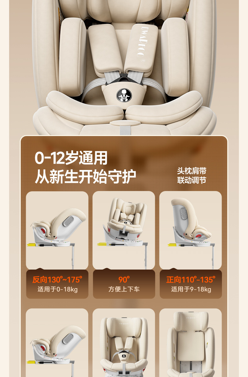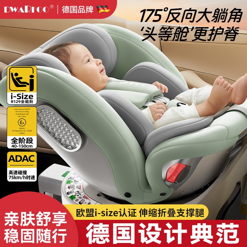 德国DWARFOO儿童安全座椅汽车用婴儿宝宝车载0到12岁便携式坐椅躺