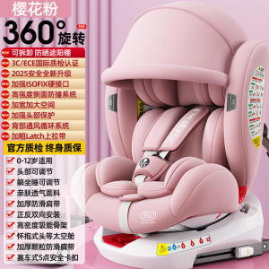 顶配樱花粉【遮阳棚+360°旋转+多方位防护+isofix硬接+国际品质】