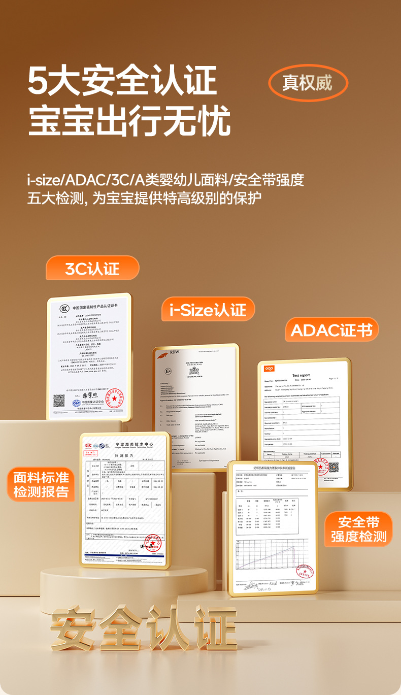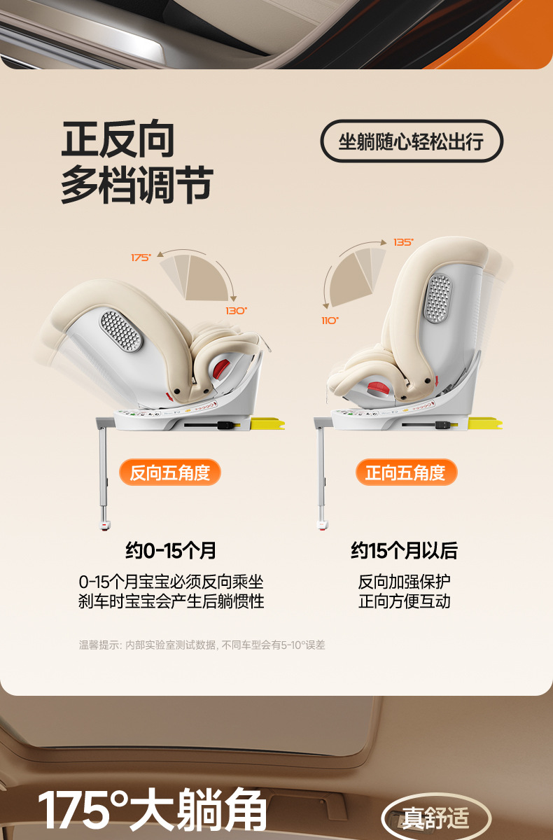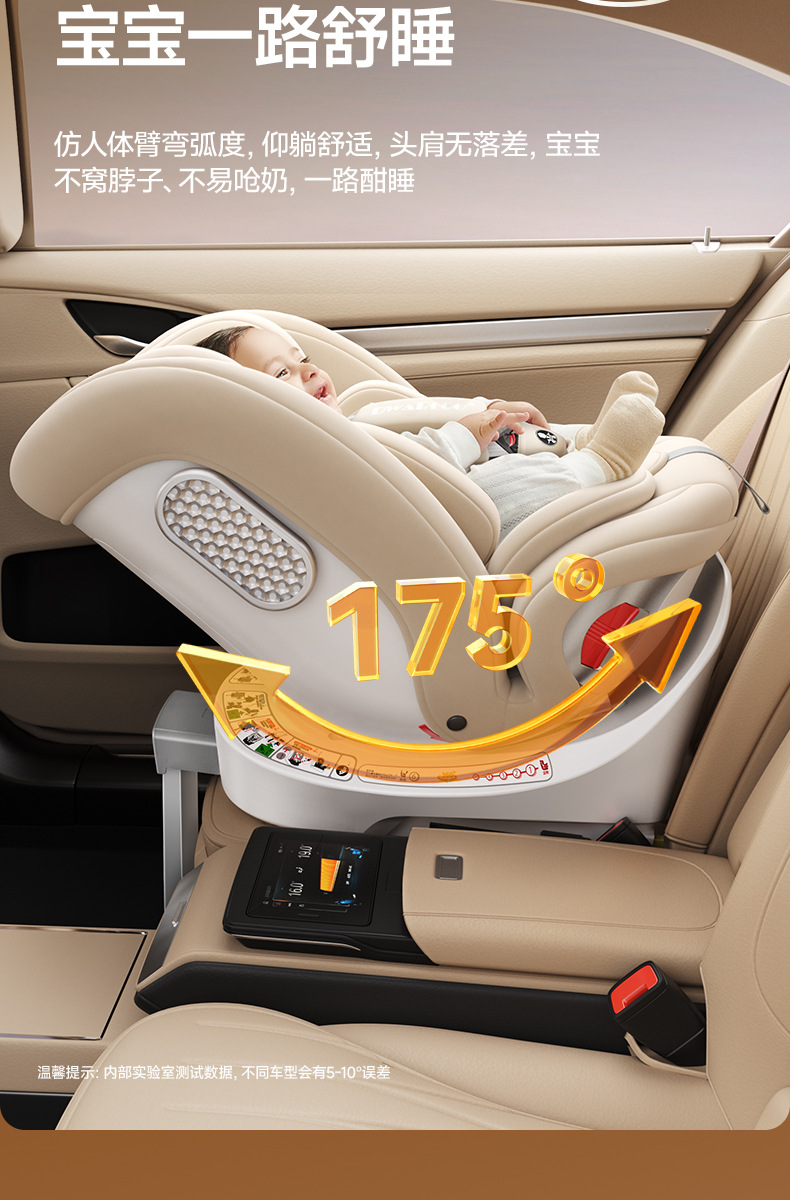 旗舰金【I-SIZE认证+ADAC测试+A类婴幼儿面料】175°大躺角+可折叠支撑腿