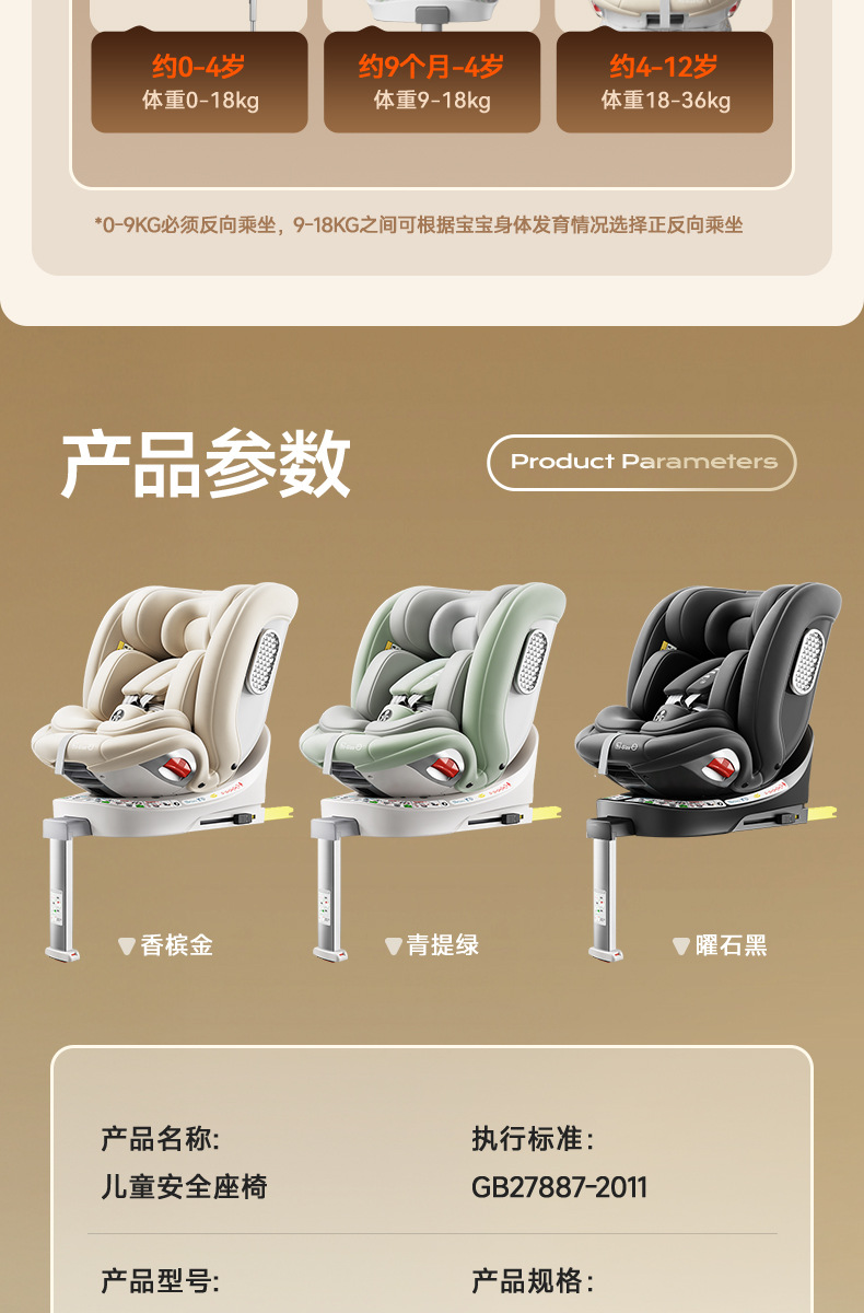 遮阳棚款-金【I-SIZE认证+ADAC测试+A类婴幼儿面料】175°大躺角+可折叠支撑腿