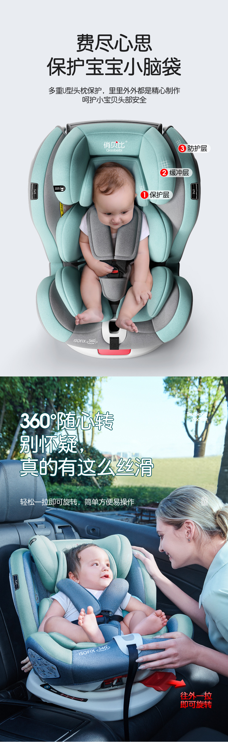 旗舰版队长【isofix+latch+360°旋转】+侧翼保护+170°躺角+90°悬停