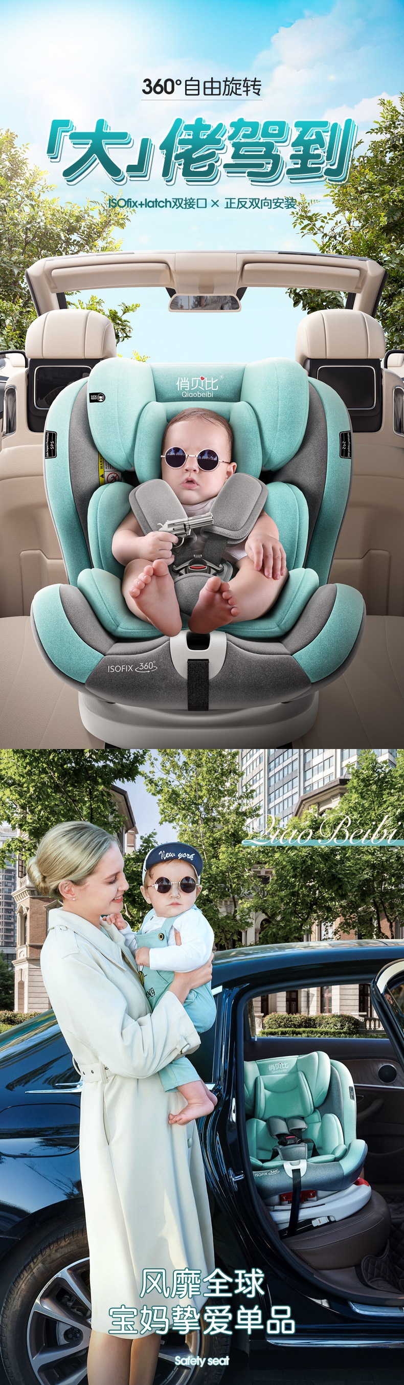 尊贵版碧水绿【isofix硬接口+360°旋转】+170°躺角+90°悬停+大空间