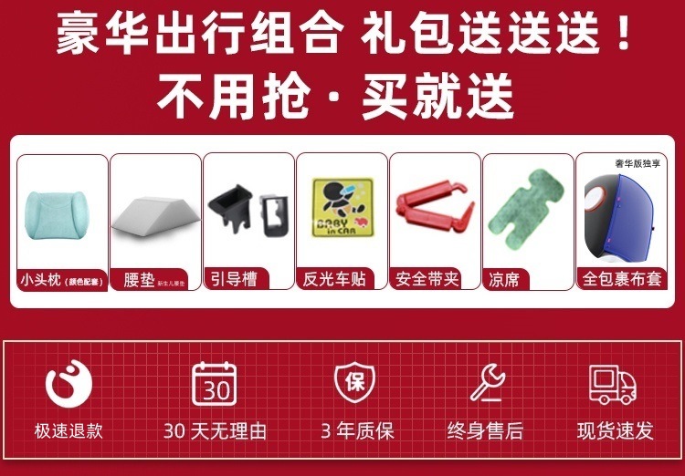 奢华版黑红+全配置+遮阳棚+360旋转+全包裹+侧翼+170躺角