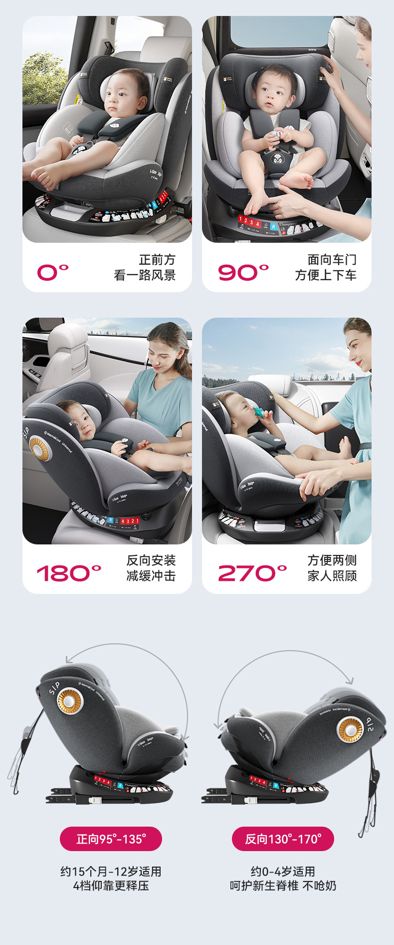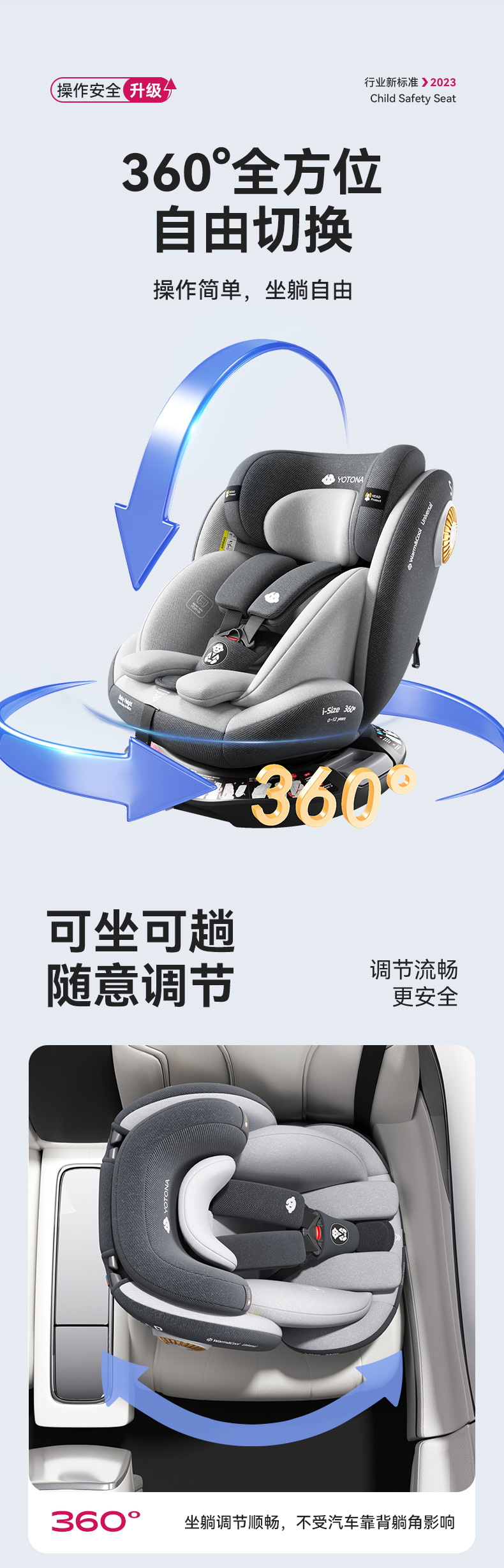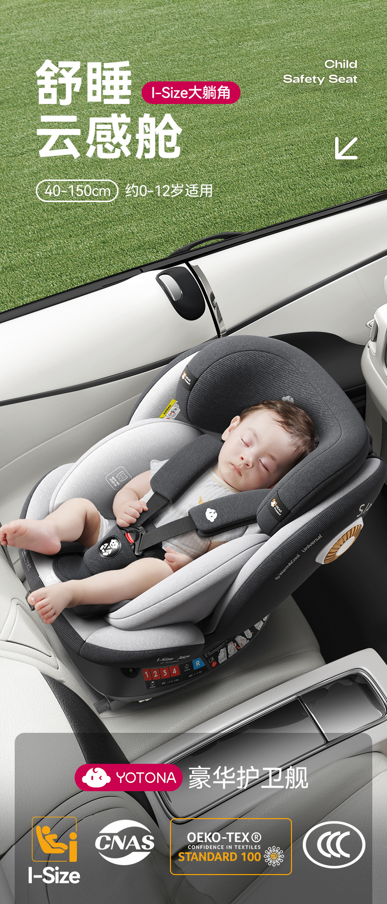 Yotona儿童安全座椅宝宝汽车用0-4-12岁便携安全坐椅可坐可躺YT01