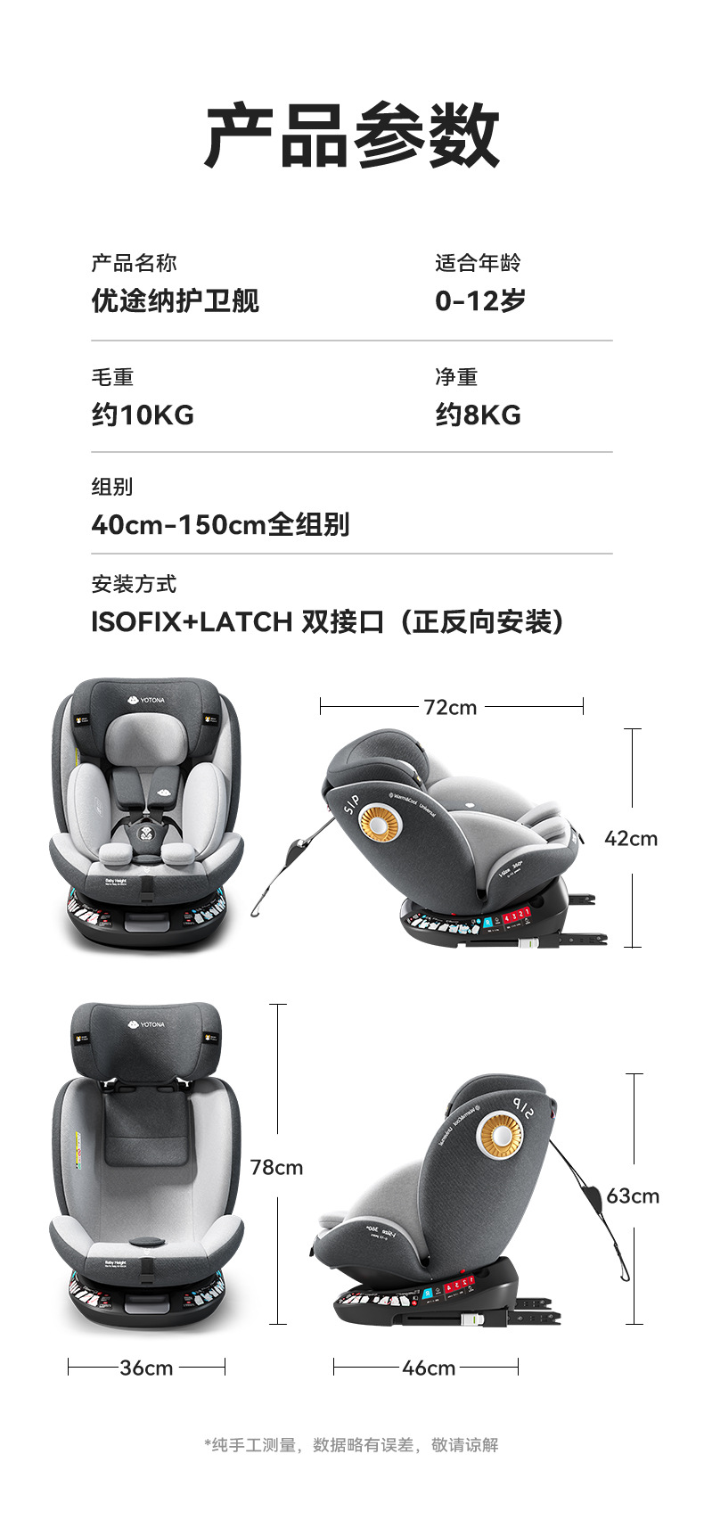 商品名称:Yotona儿童安全座椅宝宝汽车用0-4-12岁便携安全坐椅可坐可躺YT01