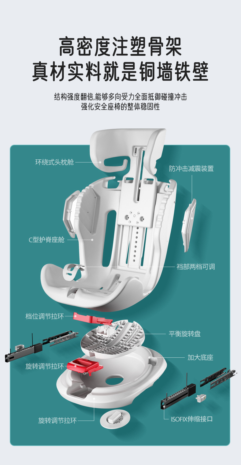 旗舰版魔力咔【isofix+latch+360°旋转】+侧翼保护+170°躺角+90°悬停