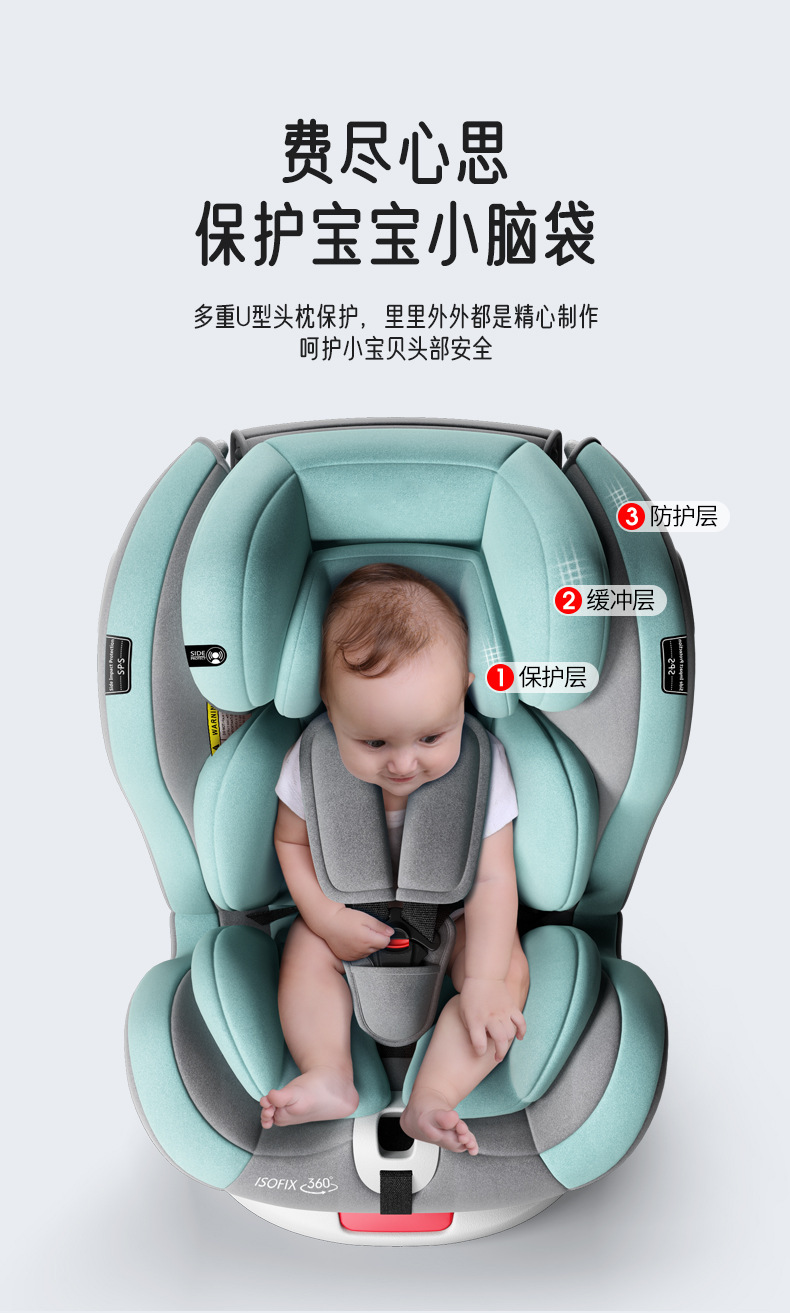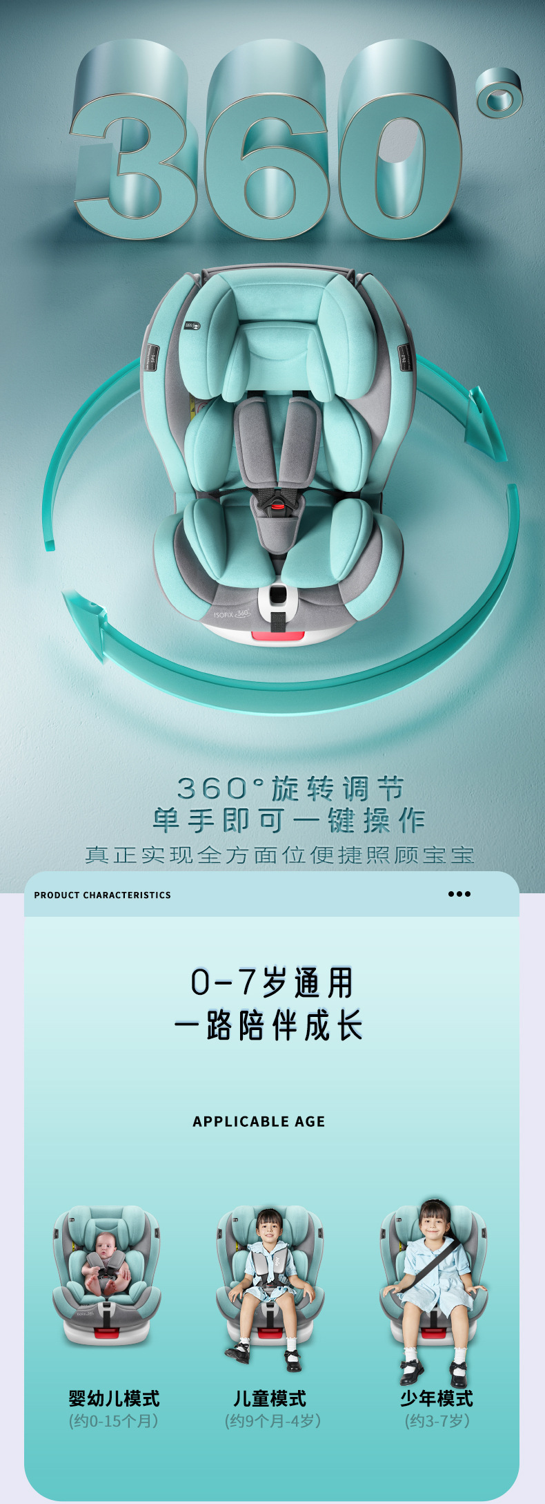 旗舰版碧水绿【isofix+latch+360°旋转】+侧翼保护+170°躺角+90°悬停