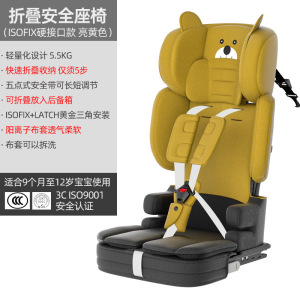 亮黄色【硬ISOFIX接口+LATCH】3C认证轻量化5S折叠收纳