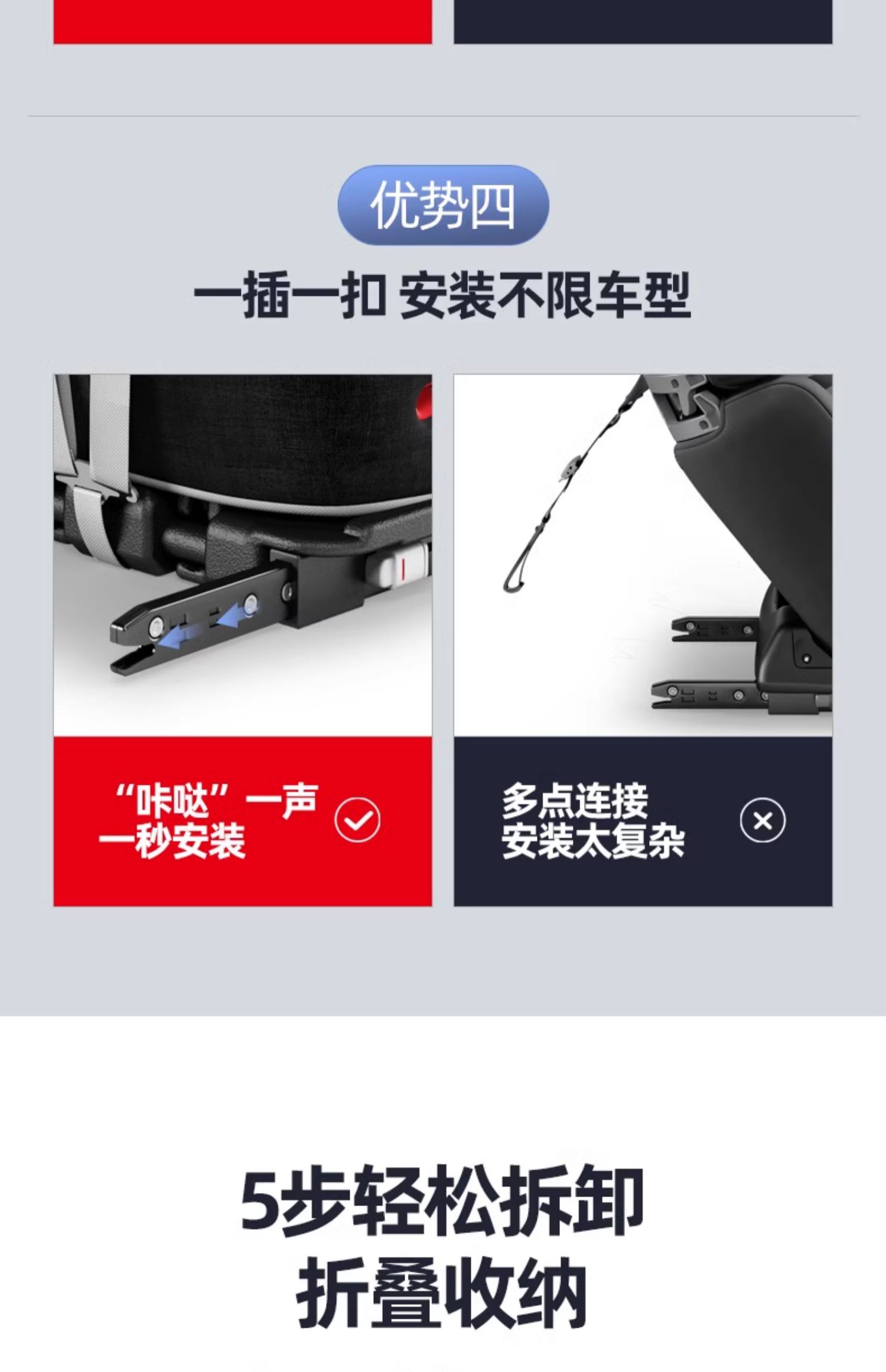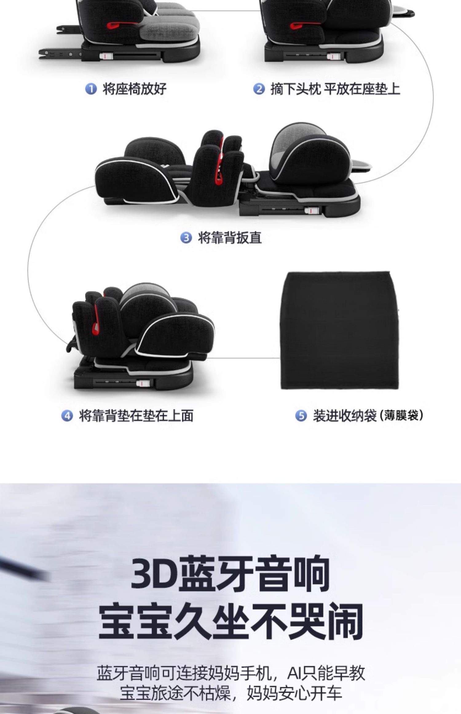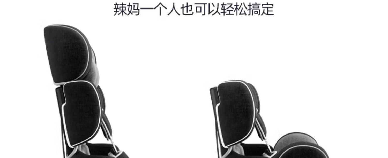 雅黑【硬ISOFIX接口+LATCH】3C认证轻量化5S折叠收纳 (