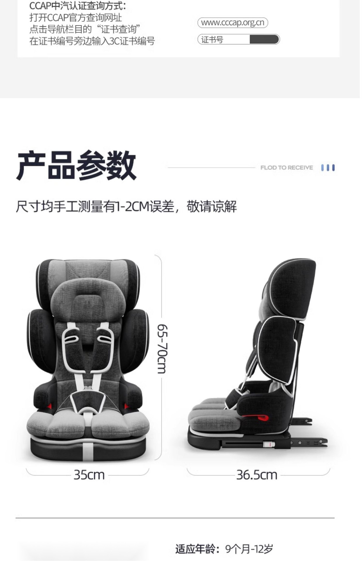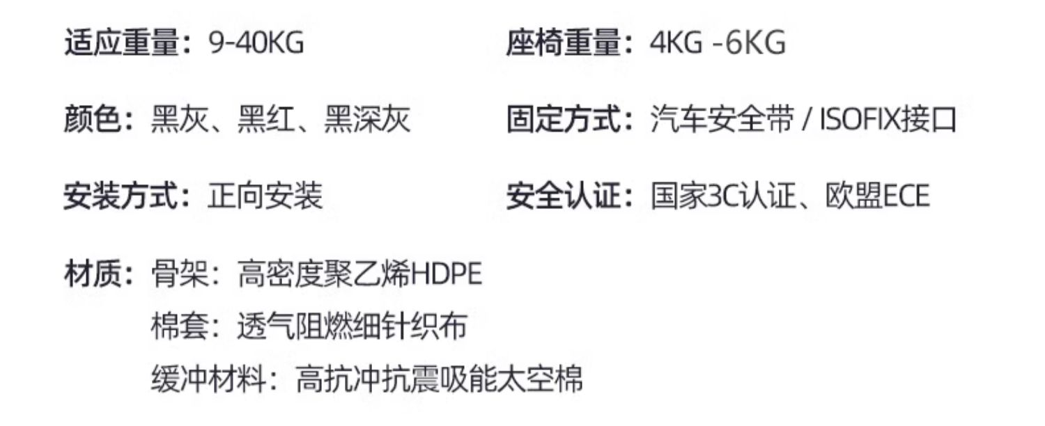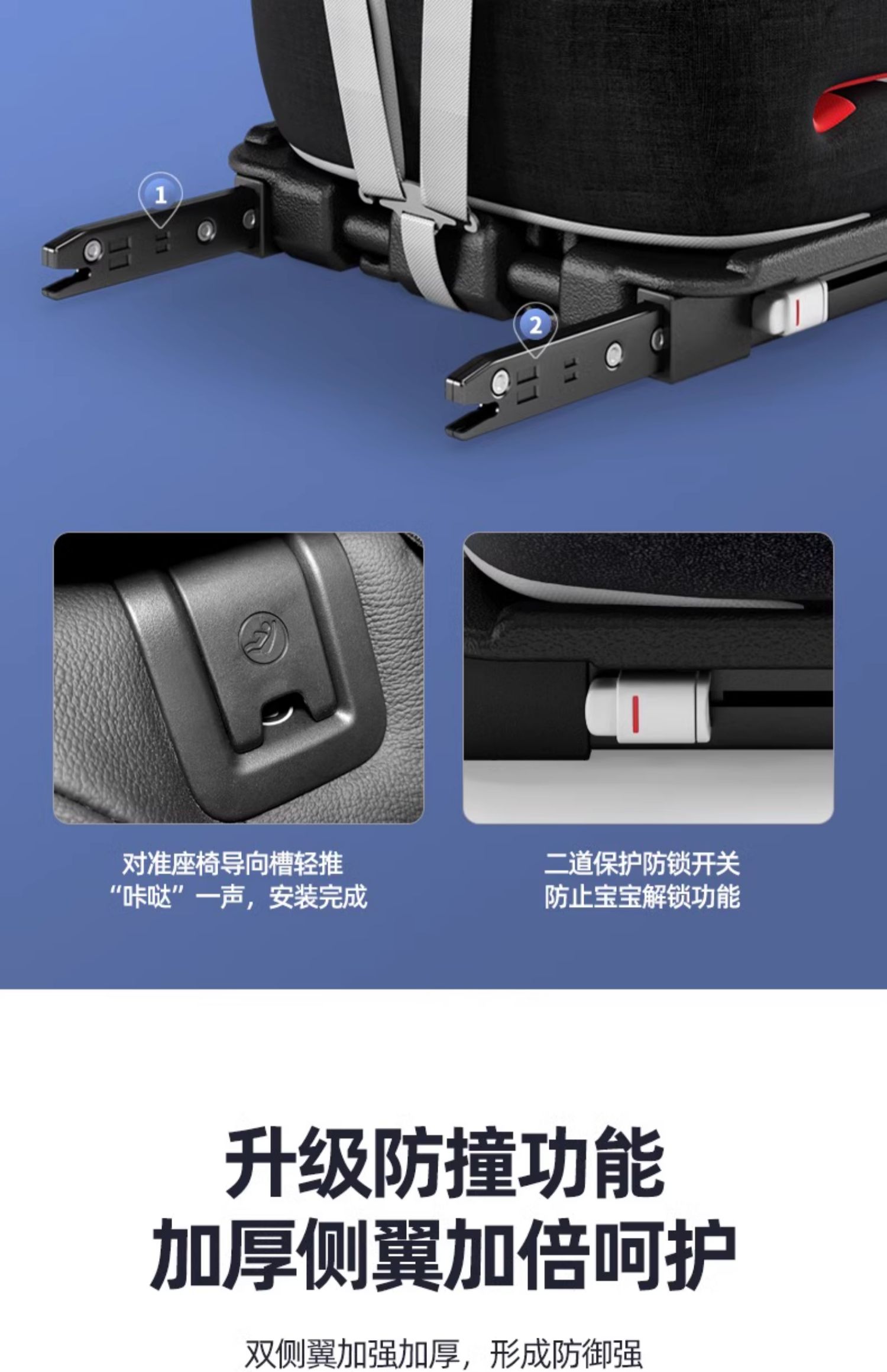 雅黑【硬ISOFIX接口+LATCH】3C认证轻量化5S折叠收纳 (