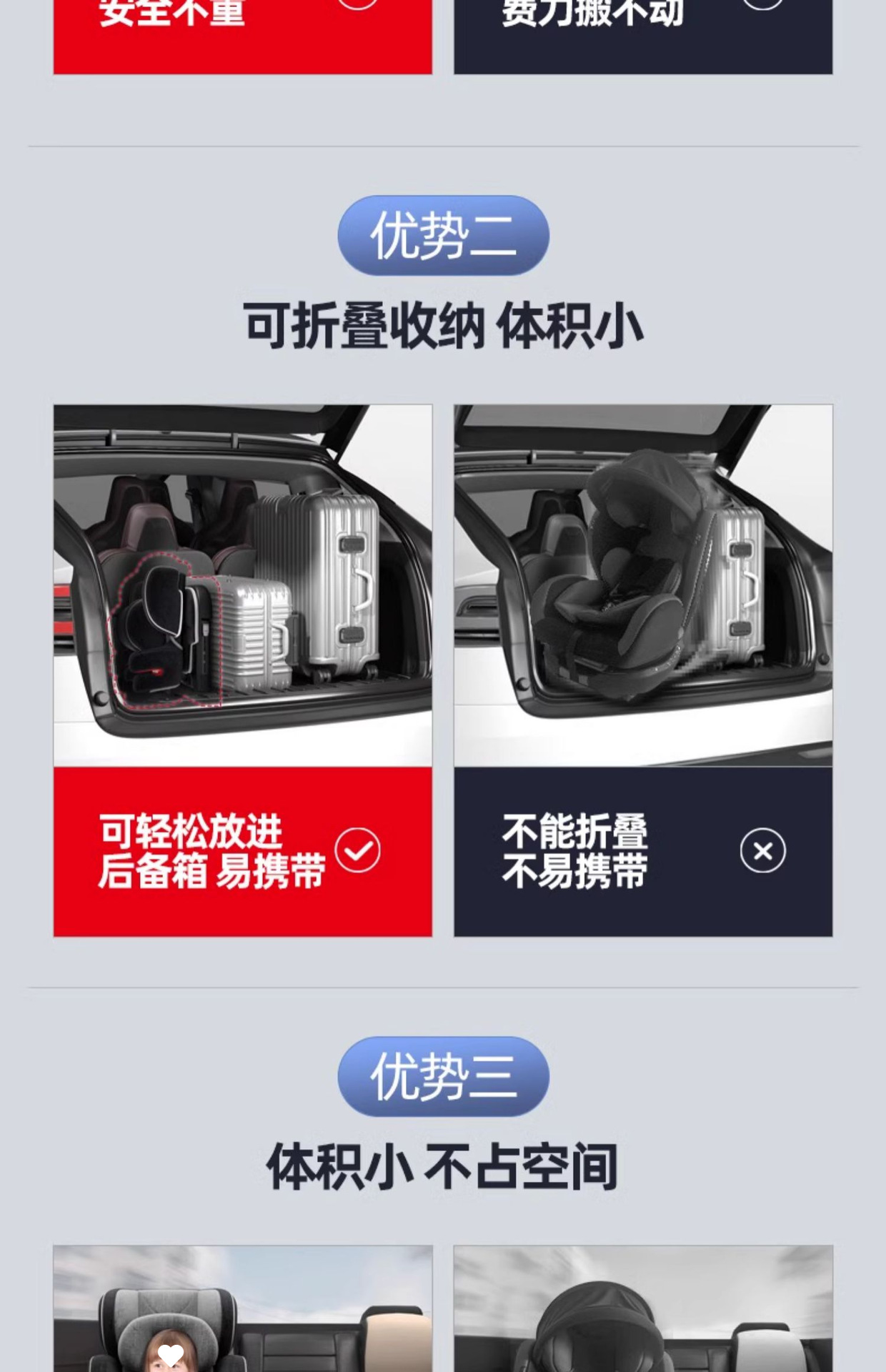 雅黑【安全带安装】3C认证轻量化5S折叠收纳 (少许晃动