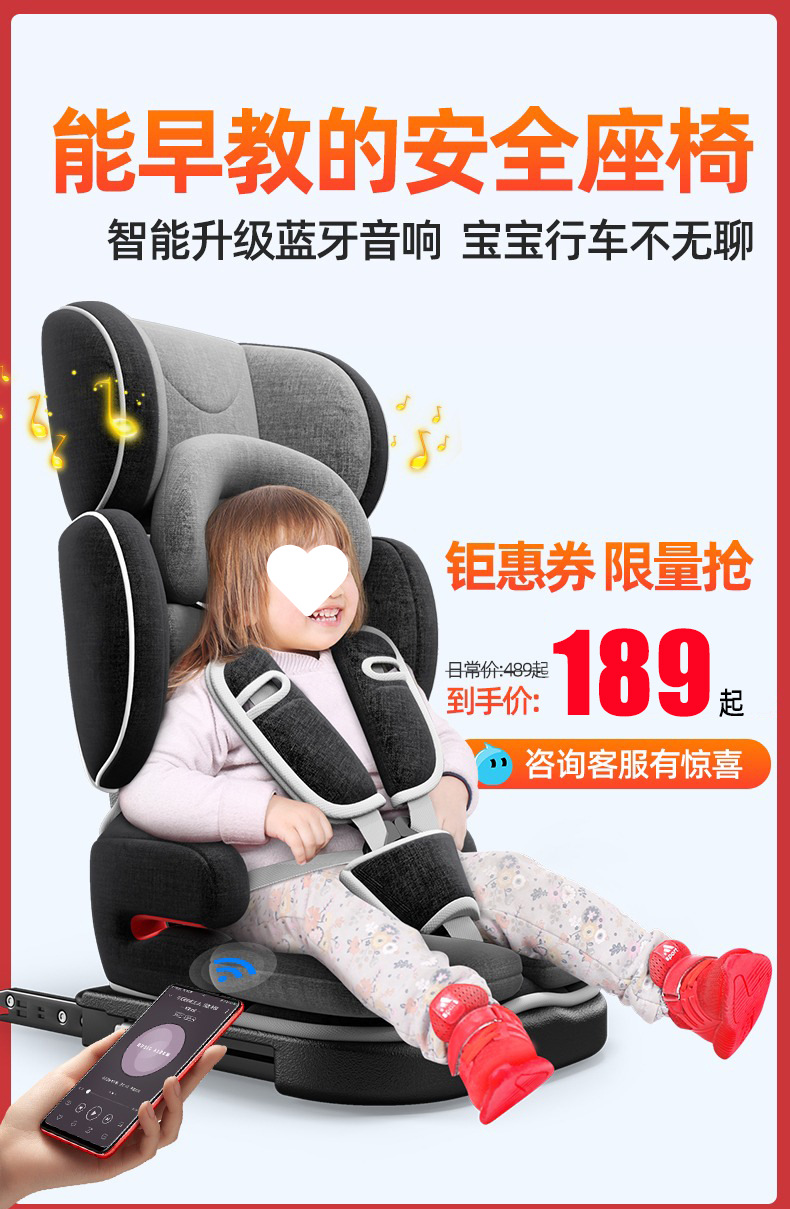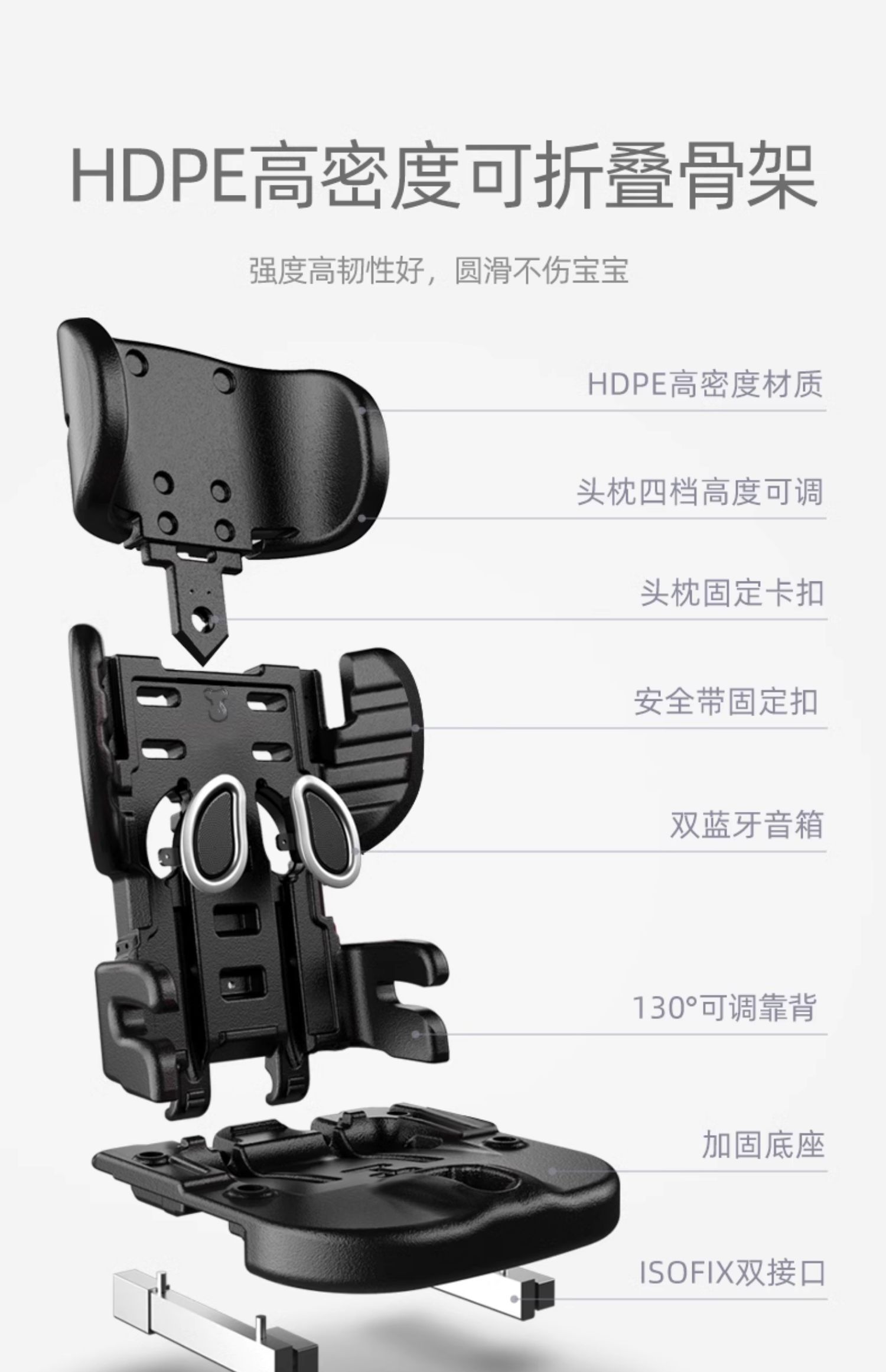 小熊带蓝牙【硬ISOFIX接口+LATCH】3C认证轻量化5S折叠