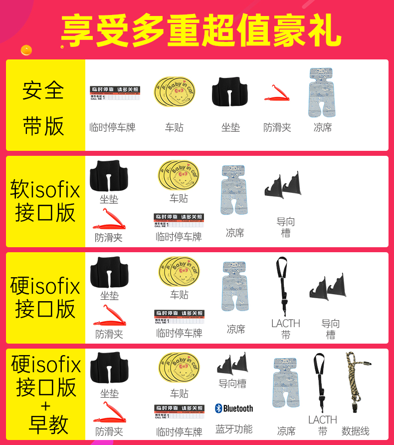 玫红色蓝牙【硬ISOFIX接口+LATCH】3C认证轻量化5S折叠