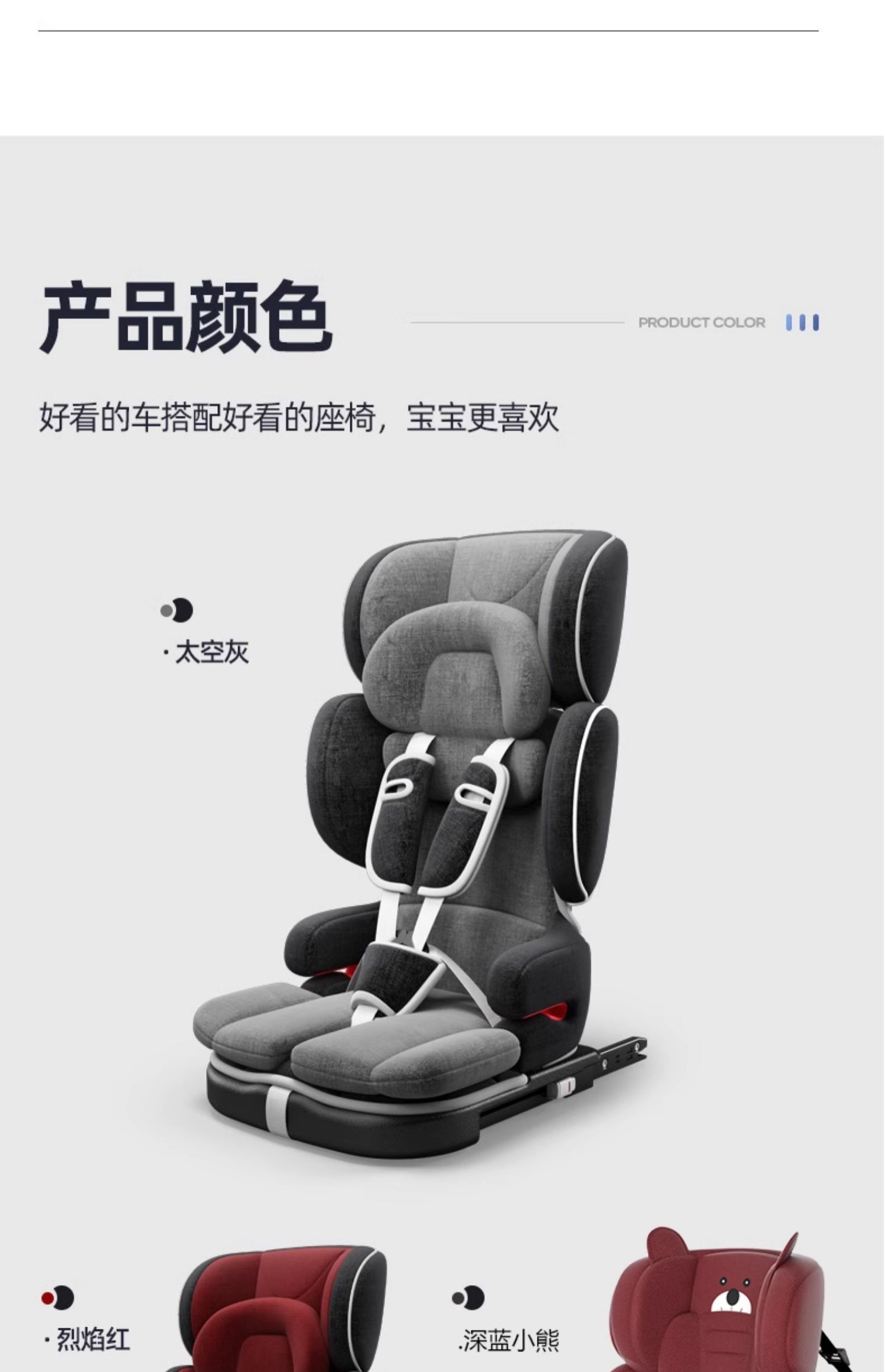 深灰色【硬ISOFIX接口+LATCH】3C认证轻量化5S折叠收纳