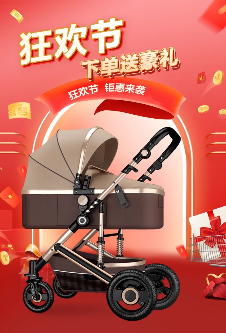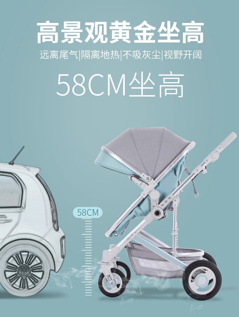 高景观婴儿推车可坐可躺换向轻便折叠四轮童车新生儿童宝宝手推车