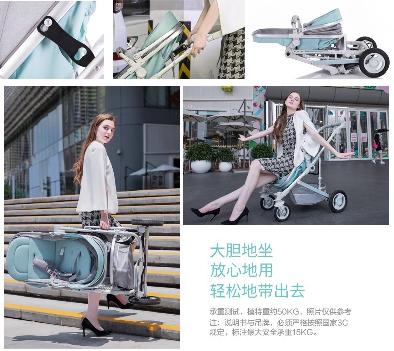 商品名称:高景观婴儿推车可坐可躺换向轻便折叠四轮童车新生儿童宝宝手推车