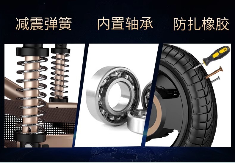 旗舰版-藏蓝-加粗铝合金车架,四轮橡胶