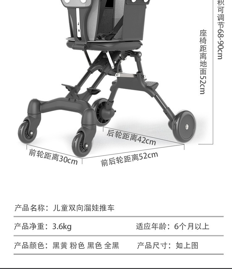 商品名称:溜娃神器宝宝遛娃舒适轻便可折叠婴儿四轮手推车双向儿童遛娃