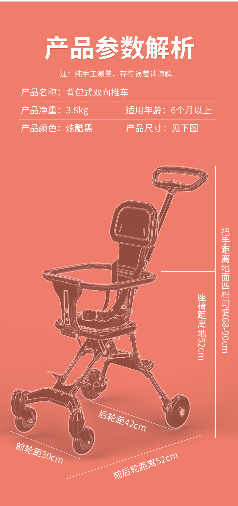 商品名称:儿童溜娃神器轻便婴儿手推车一键折叠遛娃便携高景观可双向口袋车