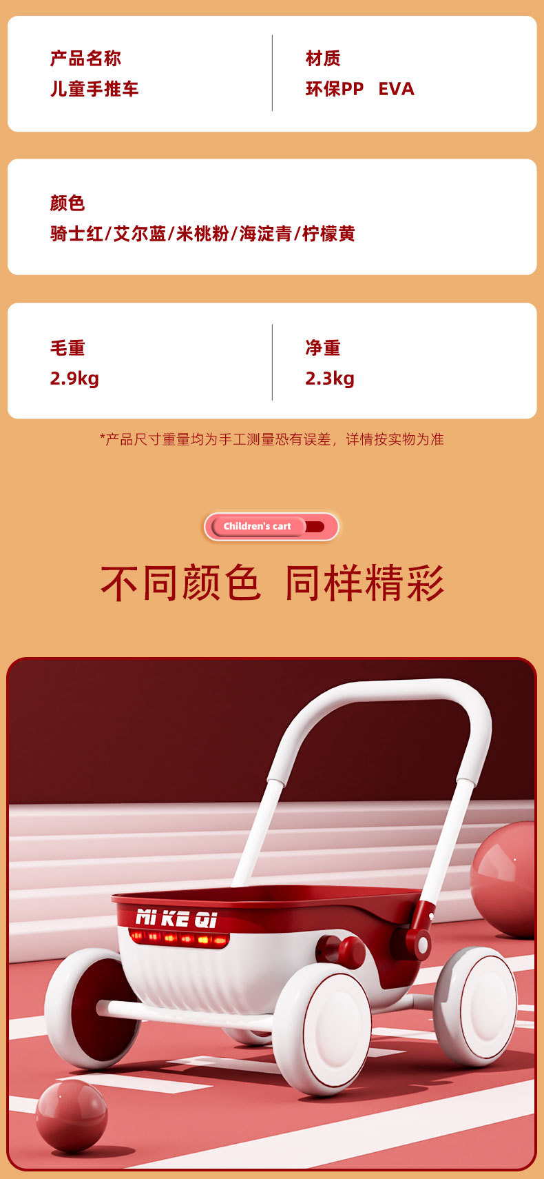 !!!!手推车的推把是用来推的 请不要直接上下拉 里面是塑料的 直接拉会损坏属于人为 白色卡扣有警告标识 请看好警告标识再操作 发泡轮会有点味道 介意勿拍哦