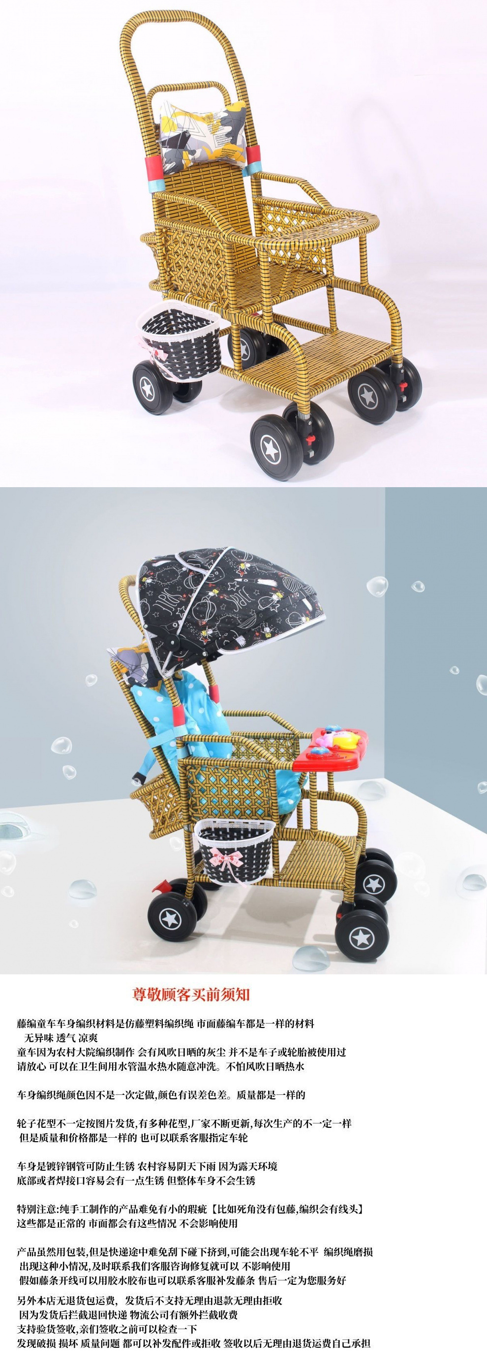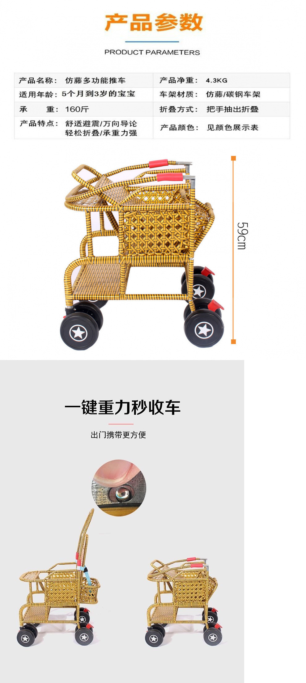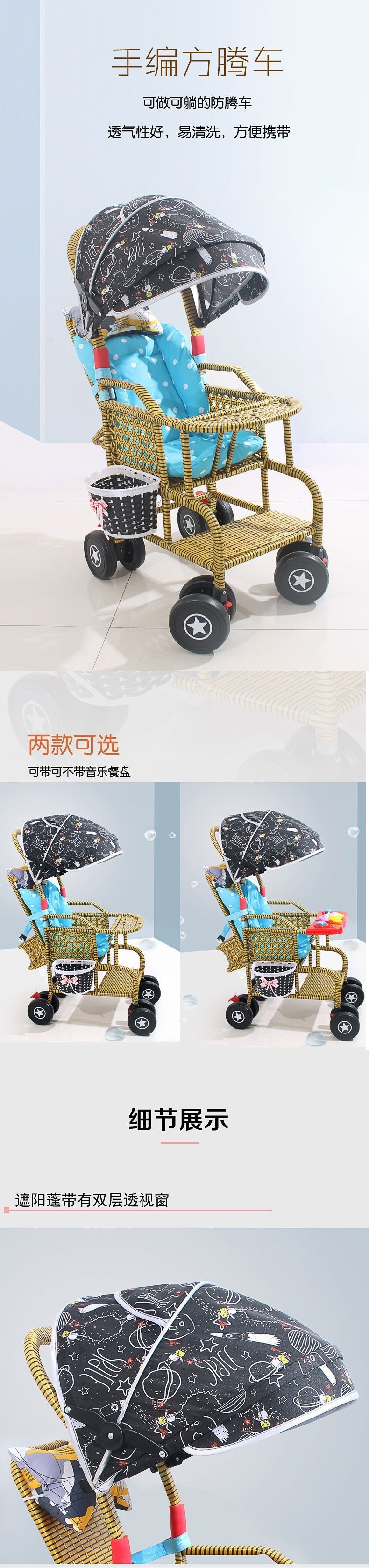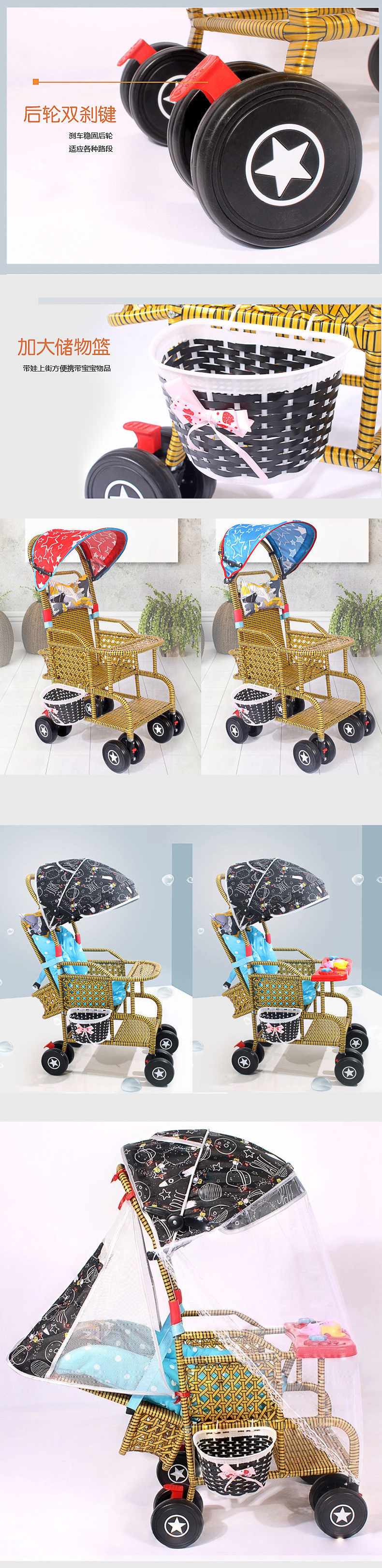 商品名称:藤编推车夏季婴儿藤椅小推车仿轻便竹藤宝宝可坐躺藤条