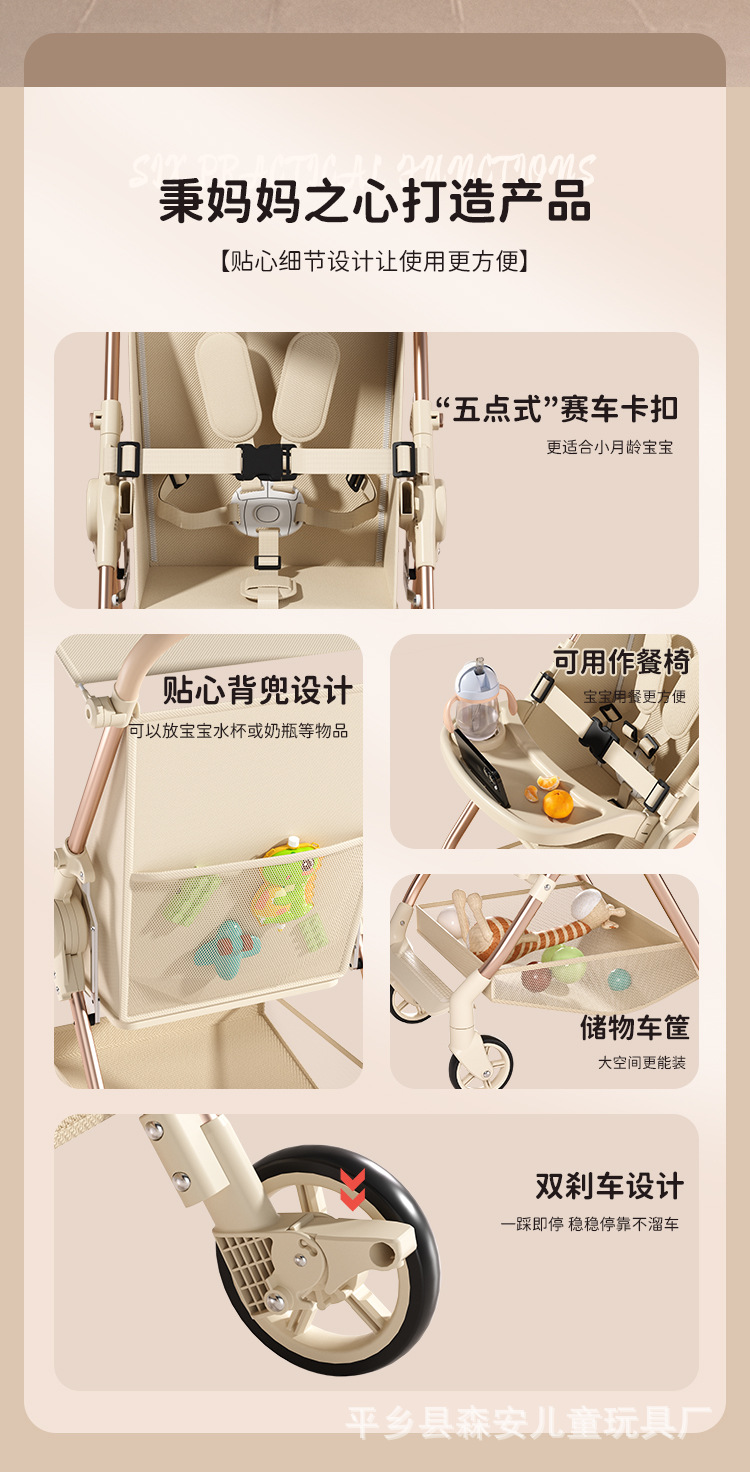高景观可坐可躺宝宝手推遛娃车双向超轻便儿童可折叠遛娃推车