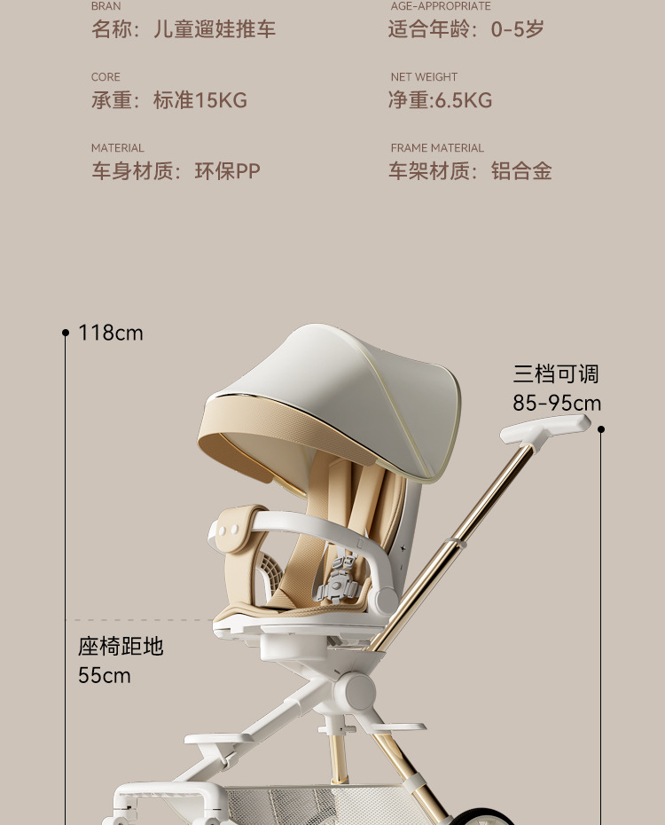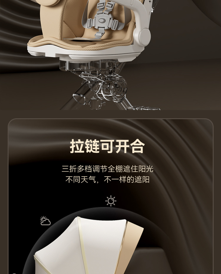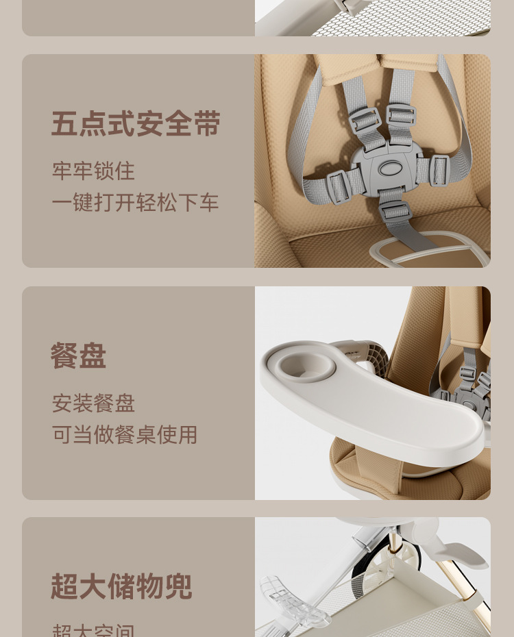 卡其-遮阳棚+餐盘+置物袋+隐藏式脚踏