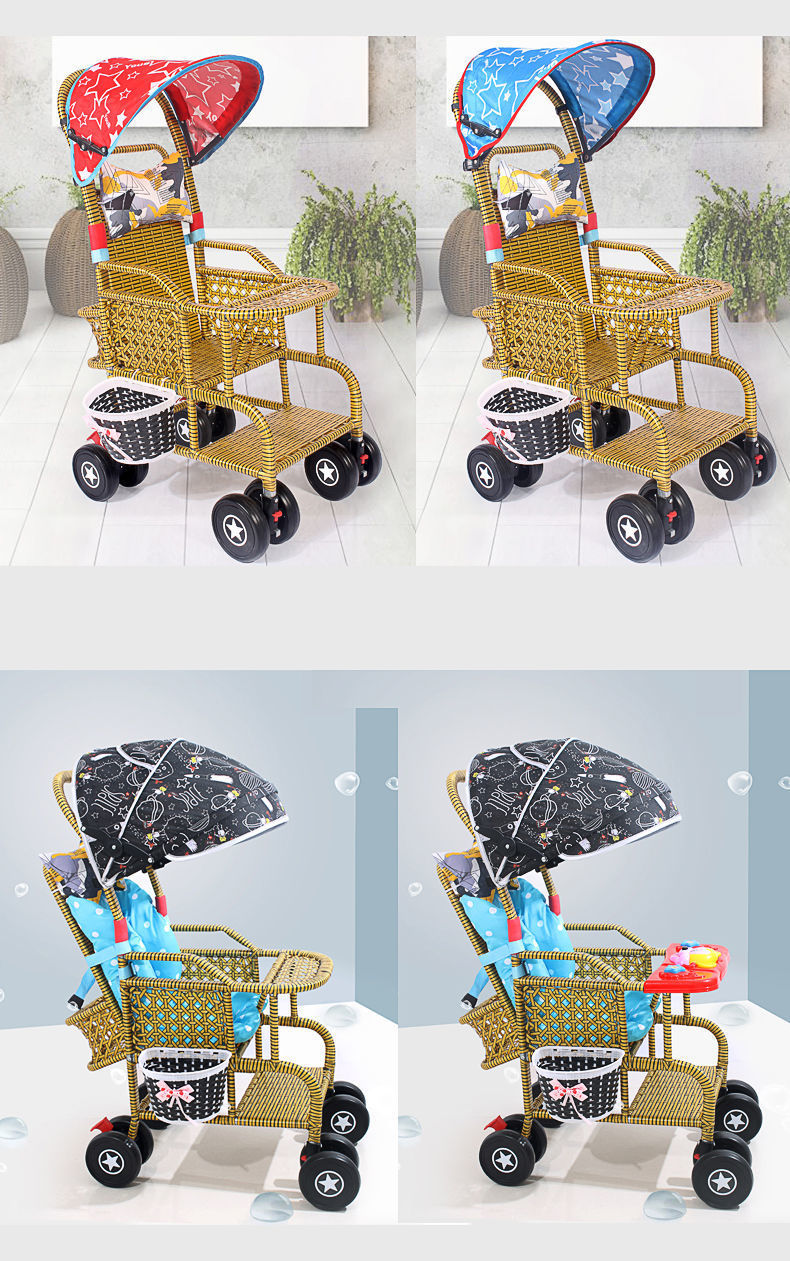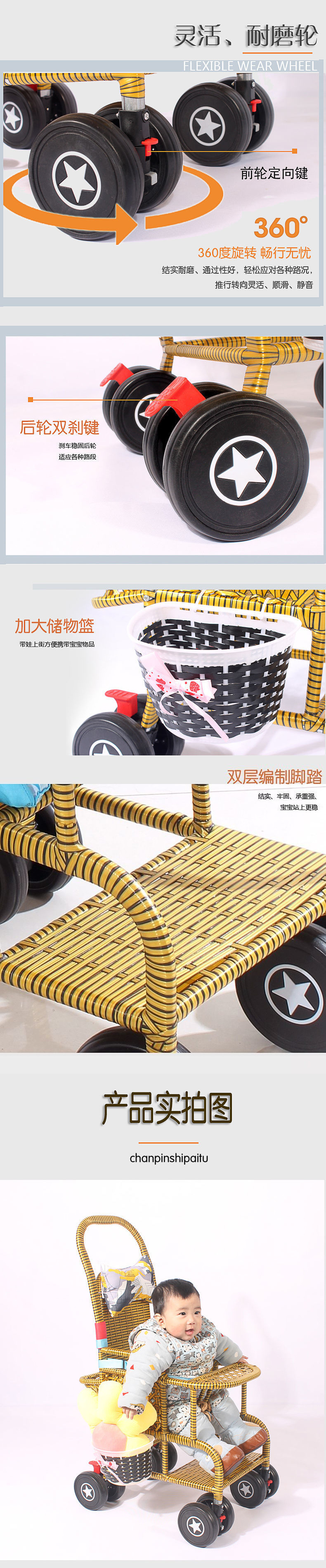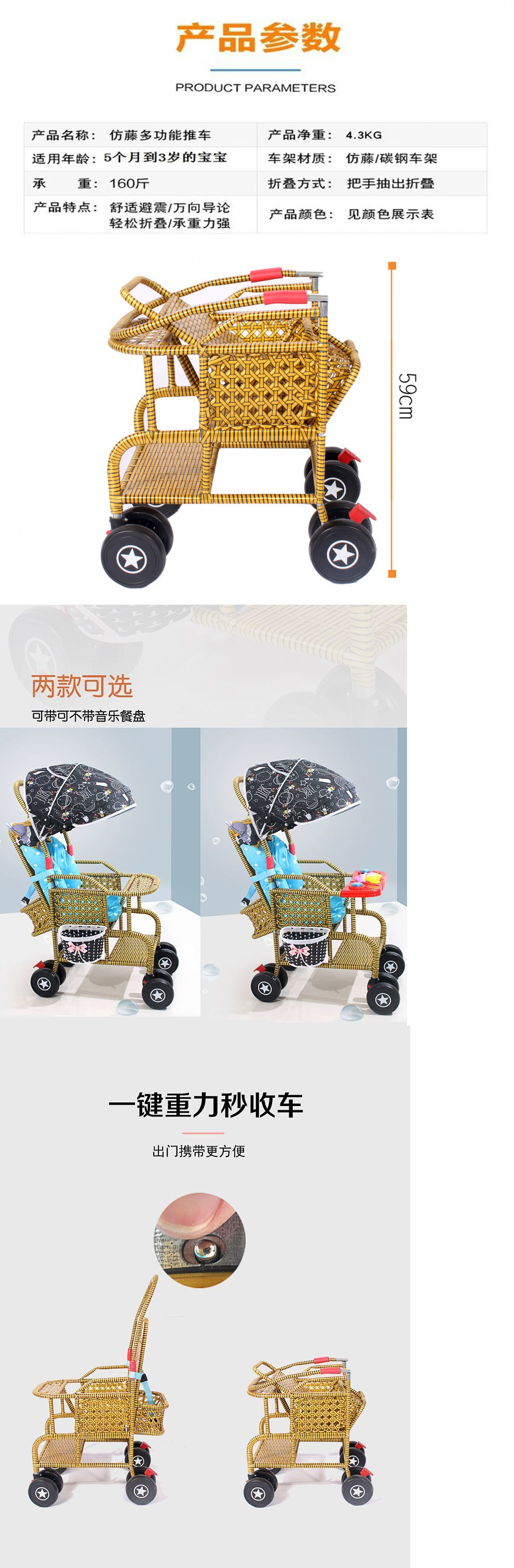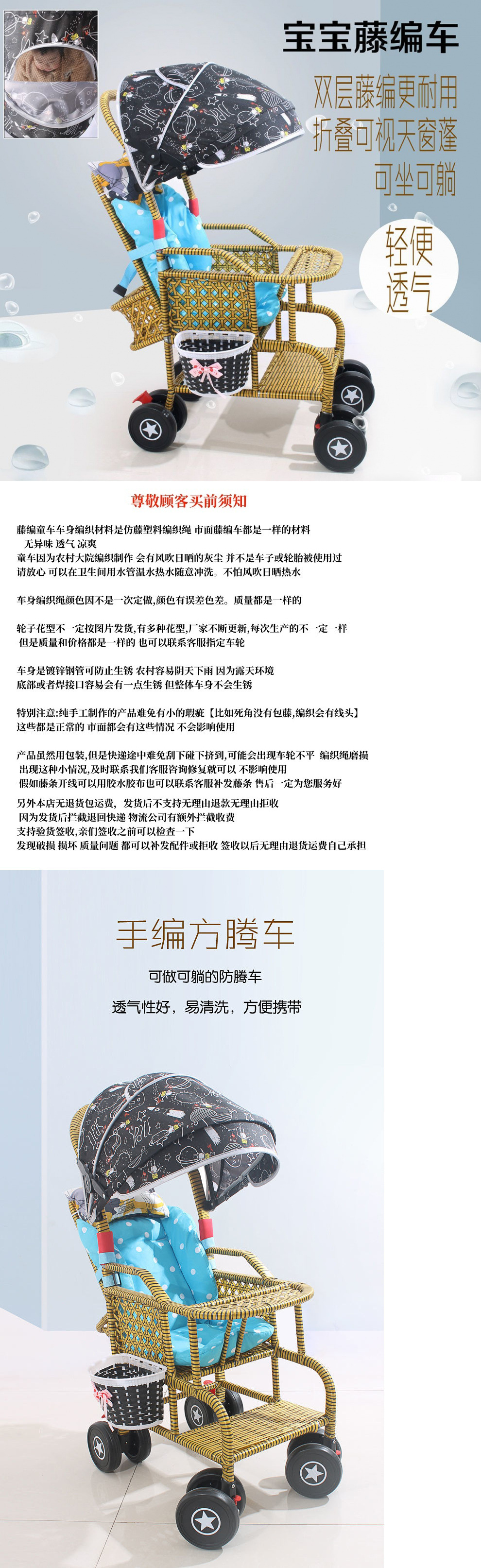 商品名称:藤编推车夏季婴儿藤椅小推车仿轻便竹藤宝宝可坐躺藤条安全舒适轻