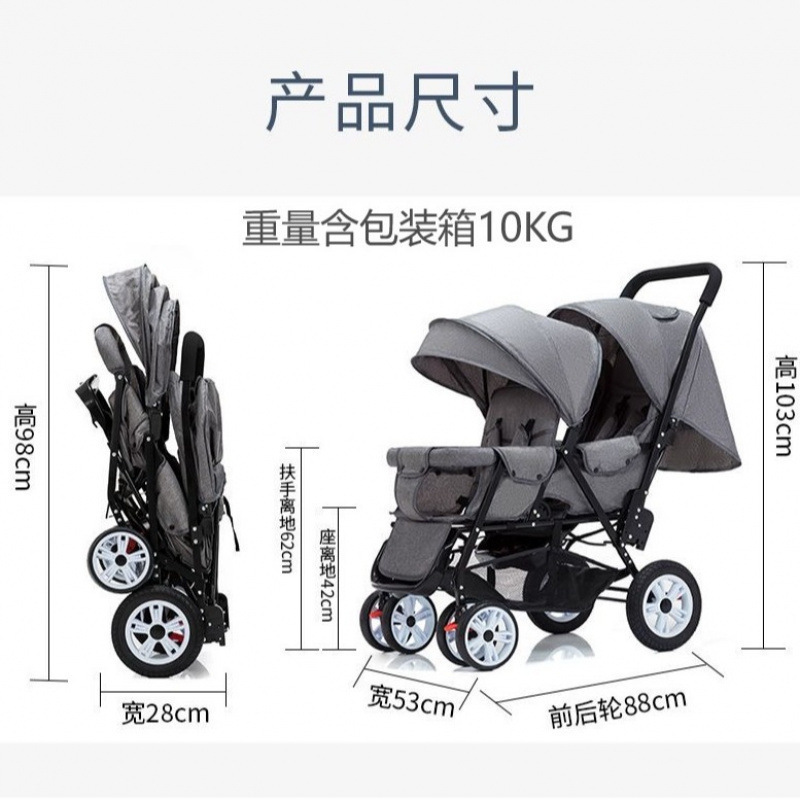 商品名称:双胞胎 二胎推车双人婴儿车可坐可躺双胎儿童轻便遛娃时代出行宝