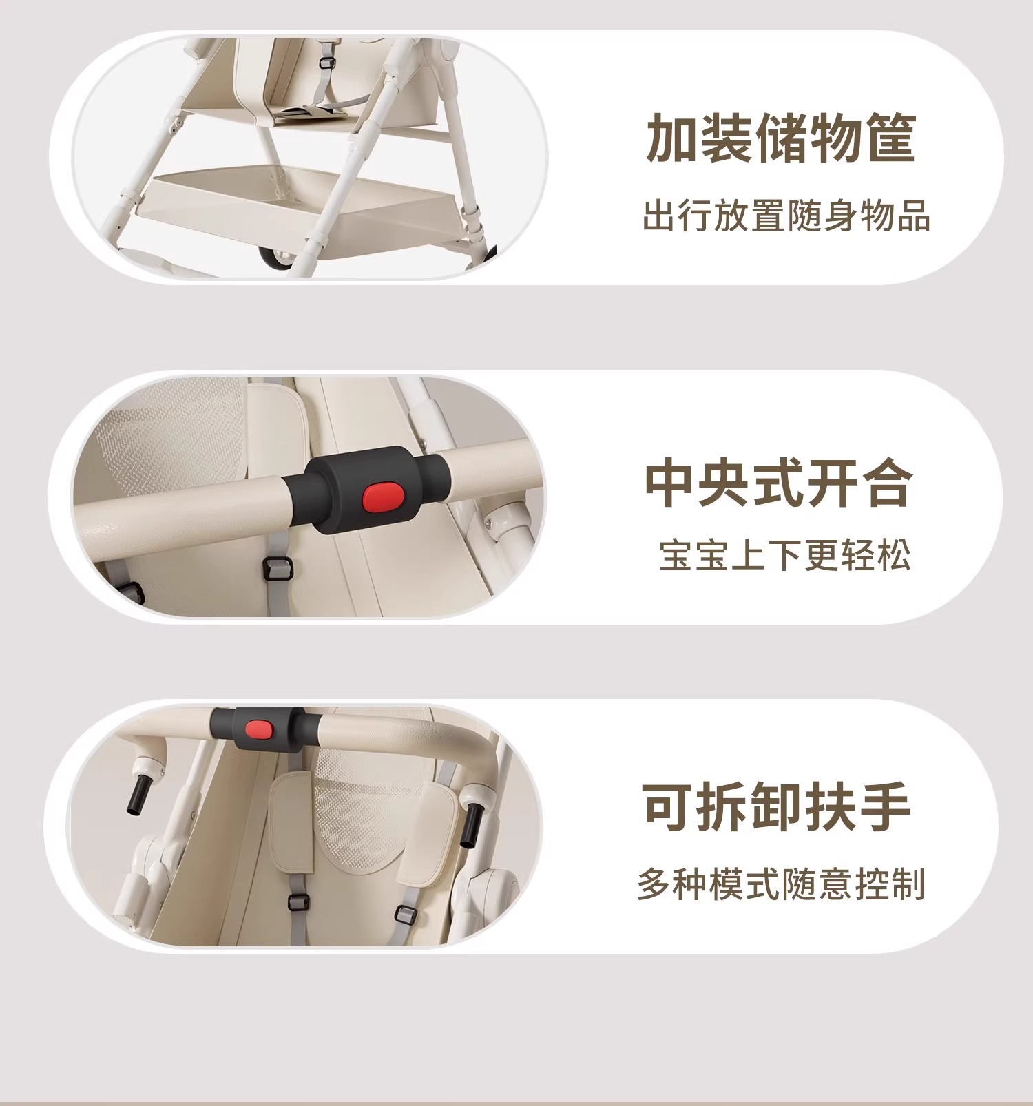 白色可平躺+【餐盘底兜】+超强承重+缓震+一键折叠可登机