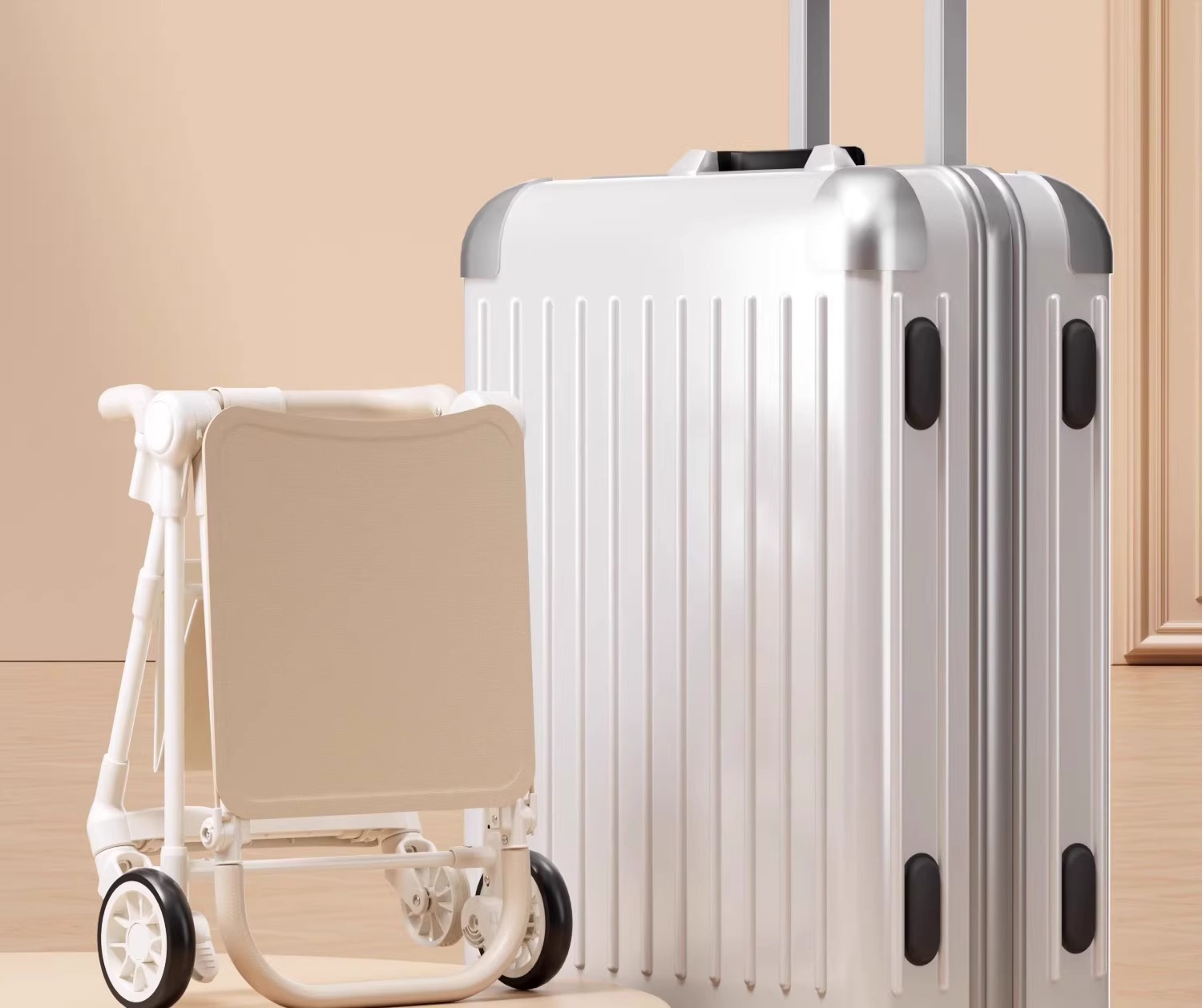 白色可半躺+超强承重+缓震+一键折叠可登机