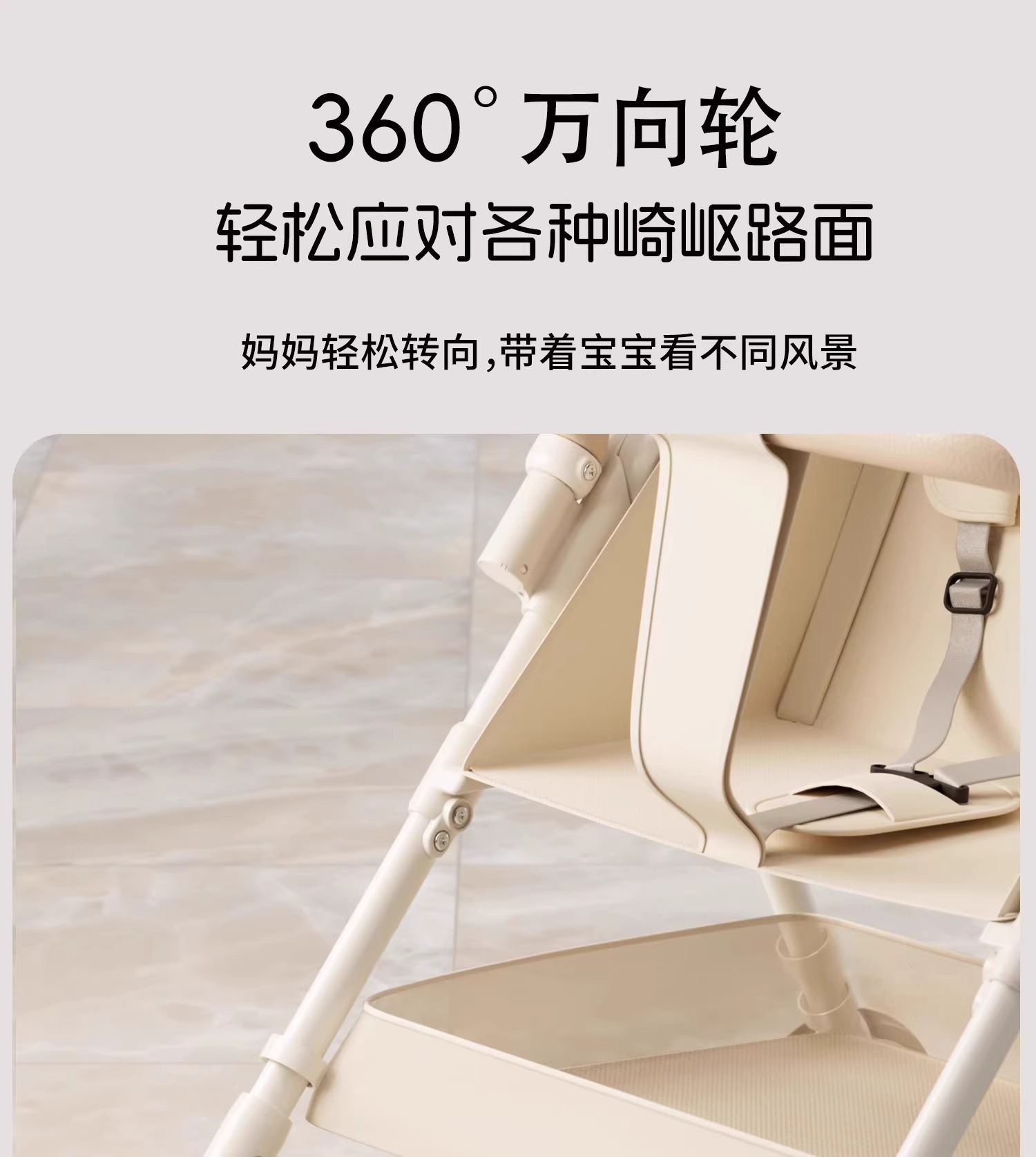 白色+【餐盘底兜】+超强承重+缓震+一键折叠可登机